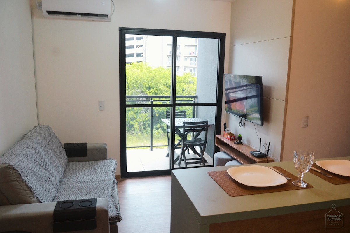 🏊🏻‍♂️Piscina 🚿 Calentador de agua a gas 🍢Filtro de agua 💧para barbacoa 🔑Check-in después de las 3:00 p. m. sin límite de tiempo 🛌🏻Toallas/ropa de cama de algodón blanco 🚗Lugar de estacionamiento adicional✳️ 🍺Minibar con bebidas y aperitivos✳️ 🛒Tienda de comestibles en el condominio✳️ ✳️ - artículos cobrados por separado Apartamento nuevo y bien equipado para hasta 6 personas y posibilidad de +1 en cama supletoria adecuada para niños. El apartamento trae practicidad y comodidad y está dentro de un condominio con una gran infraestructura.