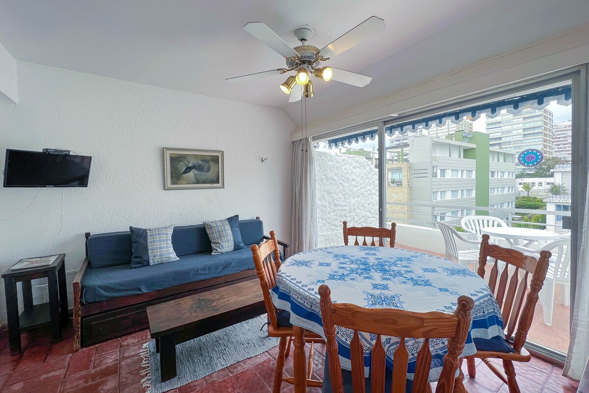 Ubicado en Parada 1 de Playa Mansa con terraza mirando al contrafrente (Playa Brava). Bien equipado y muy funcional. A 3 cuadras de Playa Brava, 2 cuadras del Casino Conrad y 4 cuadras de Av. Gorlero. Limpieza diaria (excepto feriados locales), wifi y parking exterior del edificio sujeto a disponibilidad. Carnaval/Semana Santa: mínimo 3 noches. Enero y Febrero y Fin de Año: Consulte mínimo. Gracias!