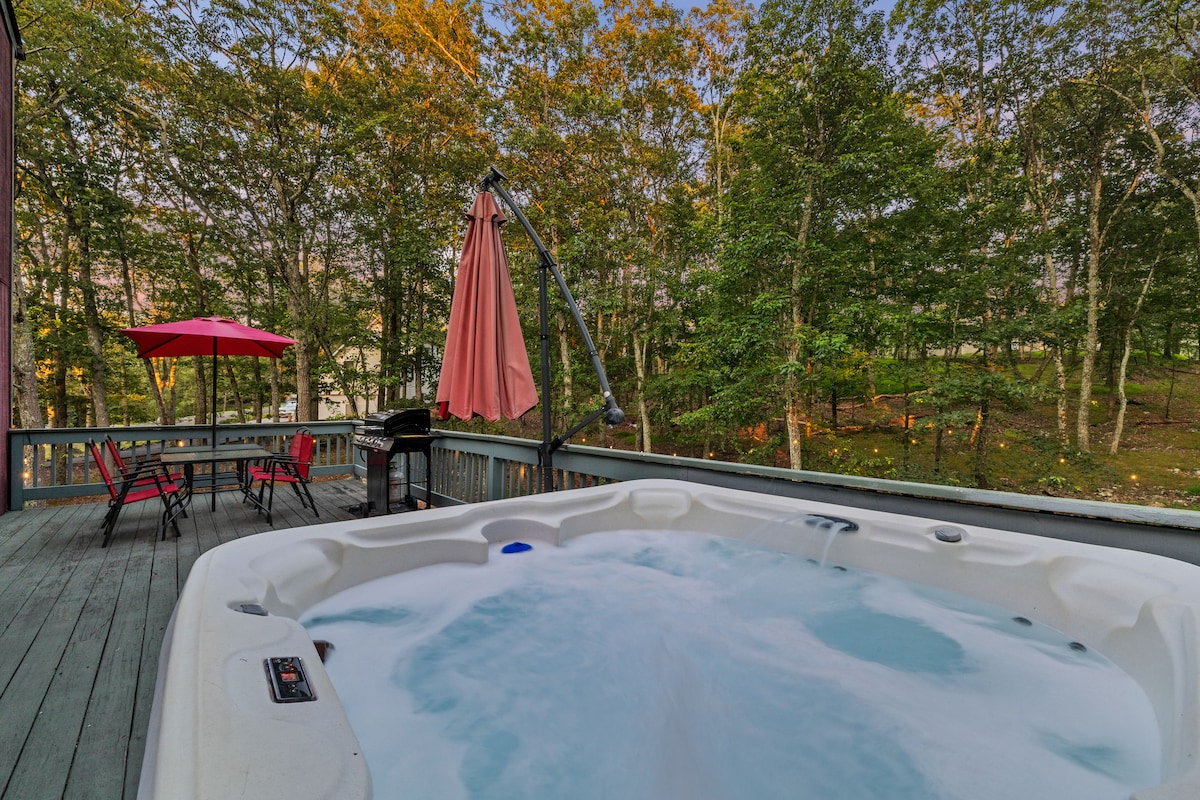 Retiro en cabaña en Poconos con jacuzzi y chimenea