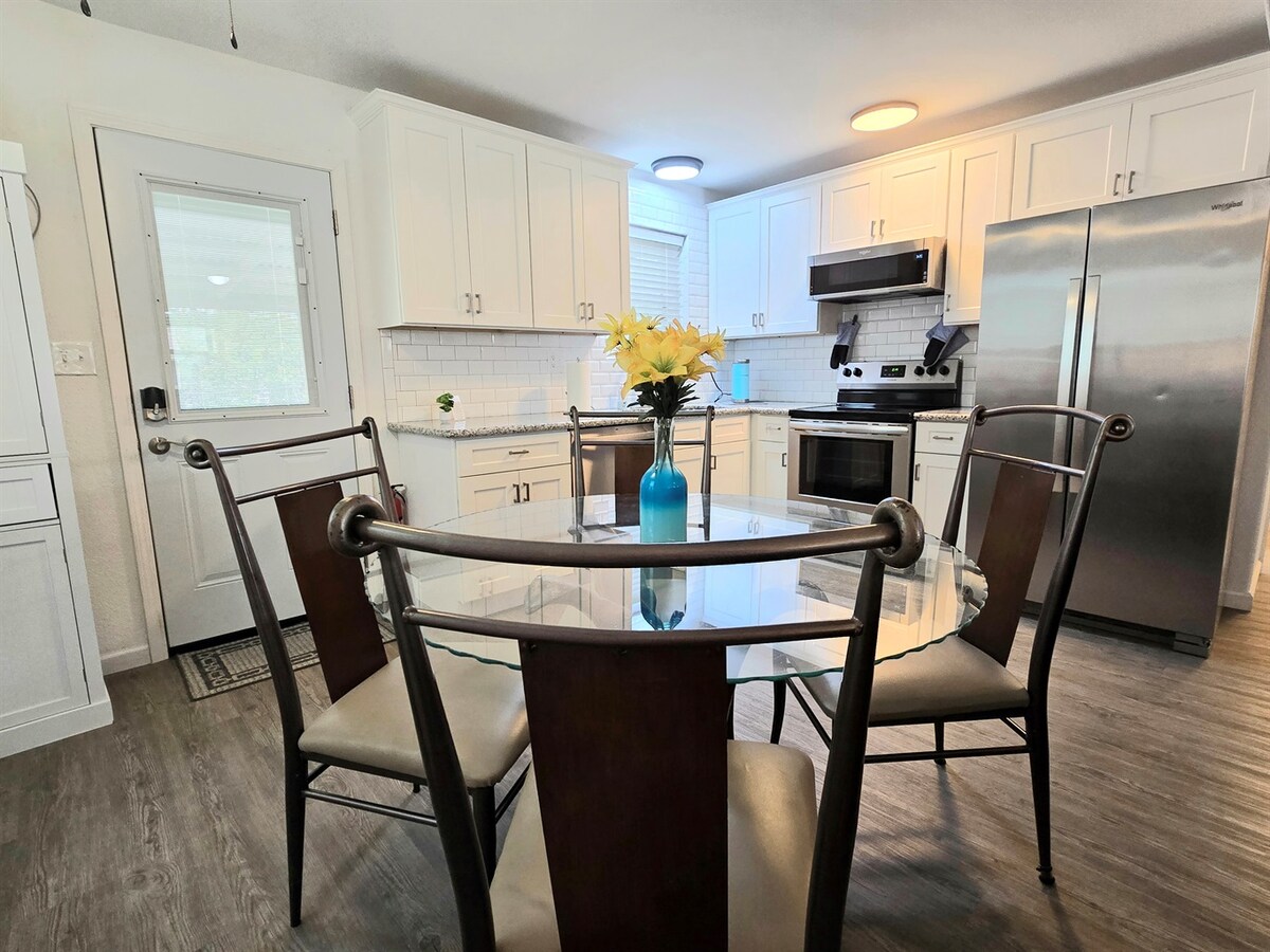Bienvenido a The East Hill Escape, una casa de campo de 1940 bellamente remodelada y lo suficientemente espaciosa para todo tu grupo. Siéntete como en casa con todas las comodidades que necesitas, incluida una cocina completa con todos los electrodomésticos necesarios, un vestidor equipado con lavadora y secadora, acogedores rincones de lectura y una oficina privada. Si bien esta encantadora casa es la escapada aislada perfecta, su ubicación hace que sea conveniente para desplazarte. Estás a solo: A 5 minutos a pie de Bayview Park. A 7 minutos en coche del centro de Palafox St. A 15 minutos en coche de la playa de Pensacola.