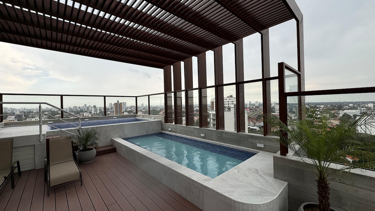 Disfruta de un moderno departamento en el corazón de Equipetrol, en el piso 6 con una vista panorámica increíble de Santa Cruz. El edificio ofrece áreas sociales de lujo y una exclusiva cancha privada de pádel, el deporte en tendencia. El departamento está totalmente equipado con mobiliario de lujo y todas las comodidades necesarias, pensado en cada detalle para viajes de negocios o placer.