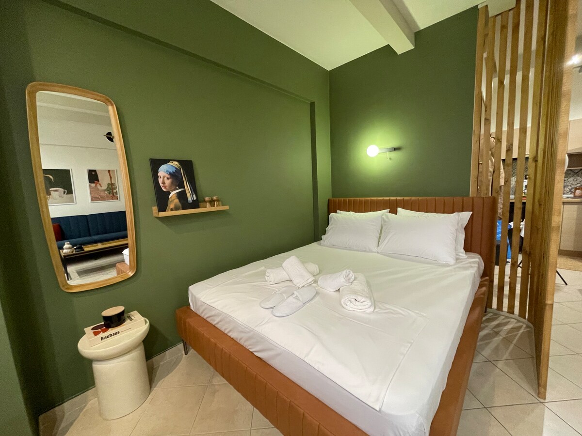 ¿Quieres descubrir el secreto de la extraña belleza de Salónica? Vive como un habitante más y descúbrelo por ti mismo en este apartamento contemporáneo situado en el corazón de la ciudad. Disfruta de un tiempo de tranquilidad, relájate y desconecta en este apartamento de lujo totalmente renovado, en el sexto piso de la calle más comercial de la ciudad. Aprovecha al máximo tu estancia y descubre el centro cultural de la ciudad, o salta de bares y restaurantes eclécticos a acogedoras cafeterías artesanales, que están, chicos, no estoy bromeando, en tu puerta.