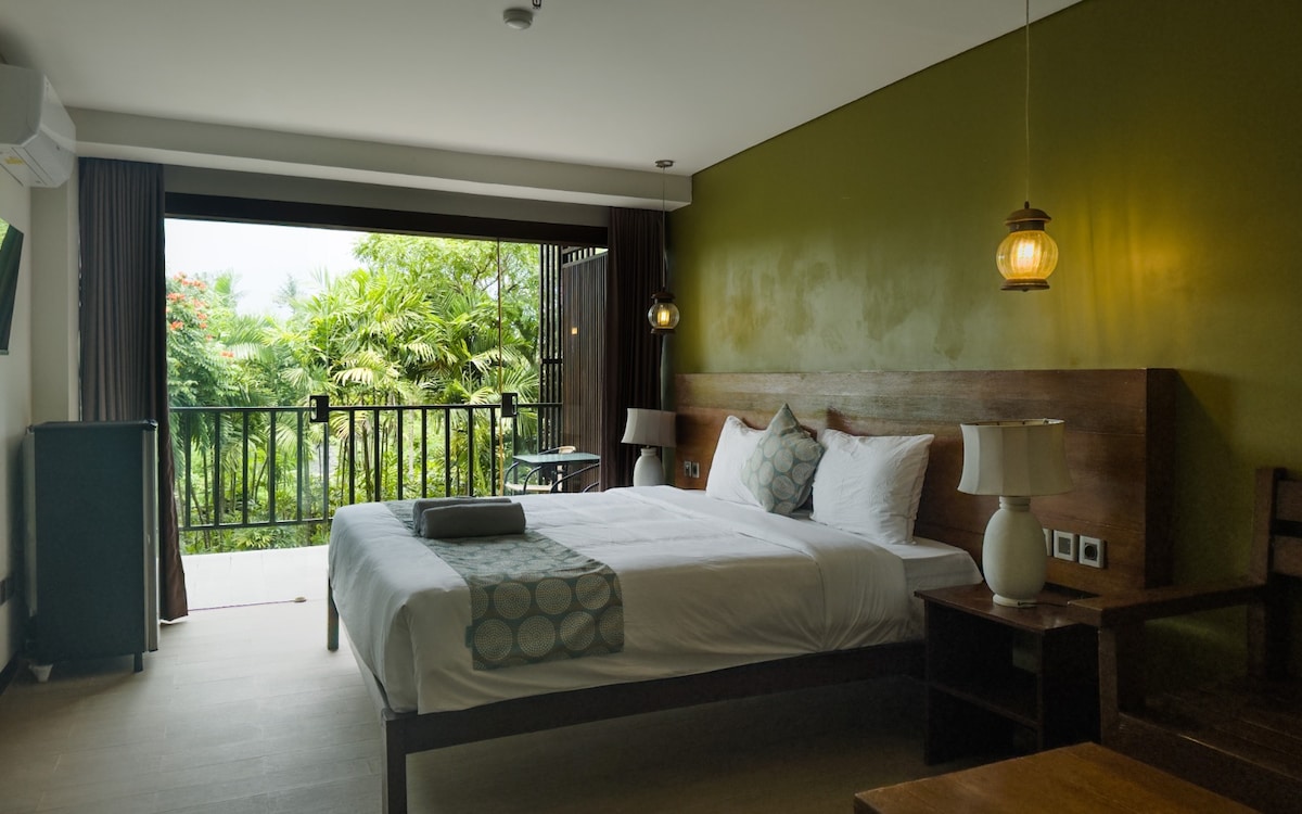 Perfect for travelers looking to relax in the heart of Canggu. Located in a charming boutique hotel,300 m from the ocean, this room has an en suited bathroom with shower and a large balcony. Enjoy our facilities: two magnificent swimming pools, a spa, a wellness studio and a coworking space. The hotel bar offers refreshing cocktails. Whether you are here for surfing, wellness or simply to recharge your batteries, our hotel is the perfect place for an unforgettable experience in Canggu.