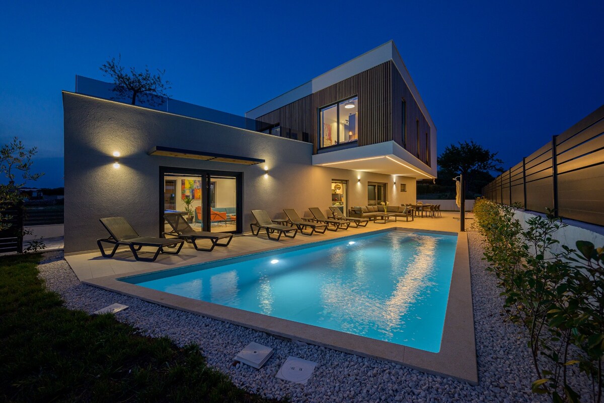 El Villa Lounge Kapelana es una villa moderna en el corazón de Istria, a 10 km de Svetvincenat y a 18 km de Pula. La oferta única de instalaciones de entretenimiento y deportes distingue a esta casa de la mayoría de las otras instalaciones de esta parte de Istria.