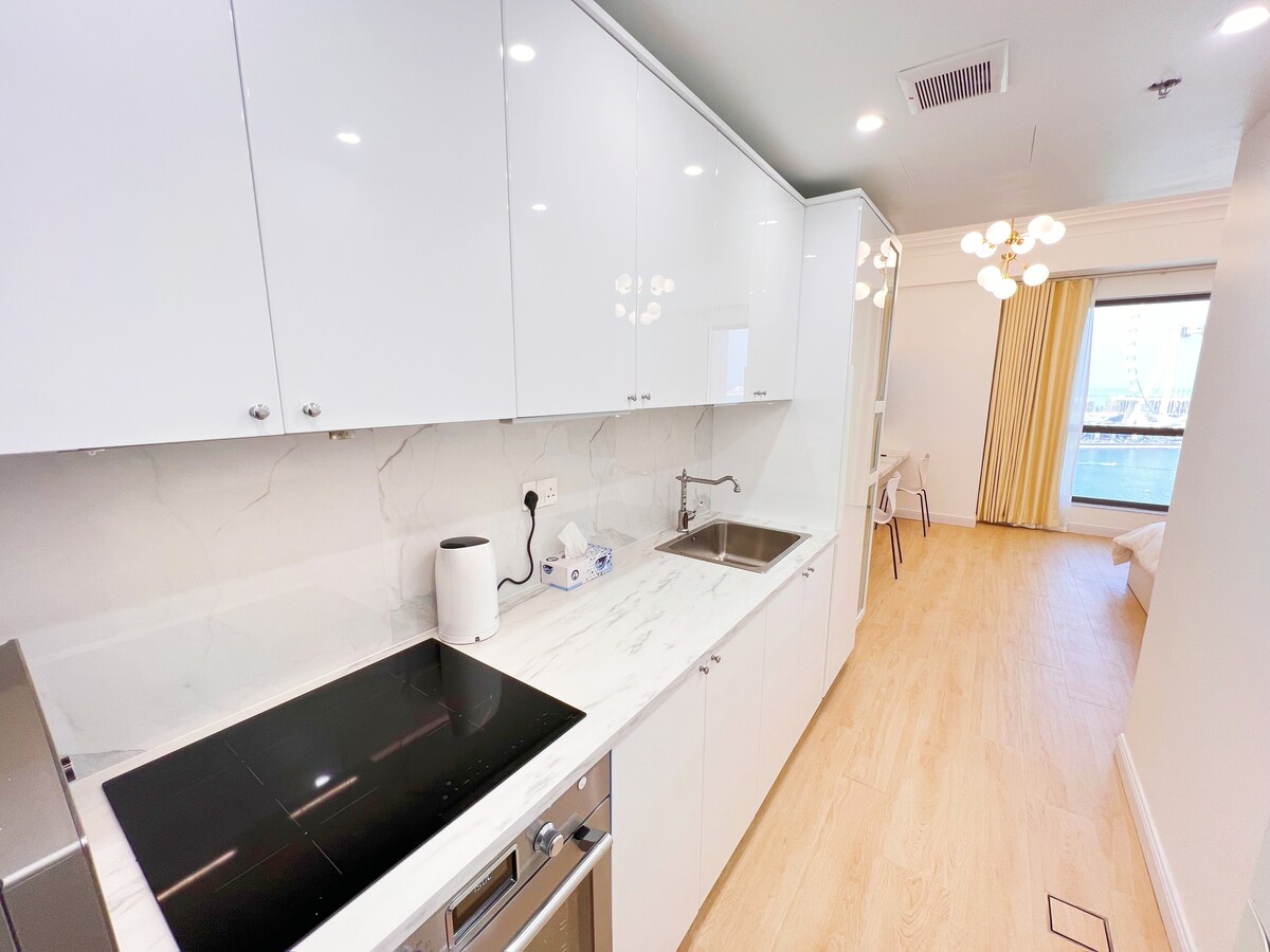 Estudio de lujo | Planta alta | Vistas al campo de golf Disfruta del lujo de nuestro exclusivo estudio totalmente renovado con vistas al campo de golf. Cuenta con muebles de alta gama, decoración de paredes bellamente diseñada, acogedora sala de estar, cocina bien equipada y un baño moderno. Disfruta de servicios como piscina, gimnasio, piscina de olas, campo de golf, zoológico de mascotas y un centro comercial en una comunidad cerrada. Perfecto para una pareja o un viajero solo. Entrada inteligente sin llave, estacionamiento cubierto, wifi y artículos de aseo.