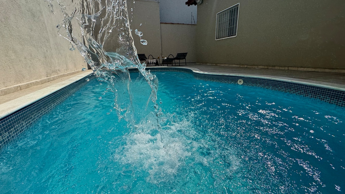 Vive momentos inolvidables en este lugar único, ideal para reunir a familiares y amigos. Hay 5 suites grandes y espaciosas con aire acondicionado Q/F y ventiladores de techo que pueden alojar hasta 26 personas muy bien. La casa tiene una piscina estupenda con cascada, hidromasaje, rodeada de un exuberante jardín con césped, palmeras, quiosco, puntos de hamaca que, por la noche, reciben una hermosa iluminación LED y tiene una sala de televisión, sala de juegos con mesas de billar y futbolín, cocina gourmet y un gran balcón.
