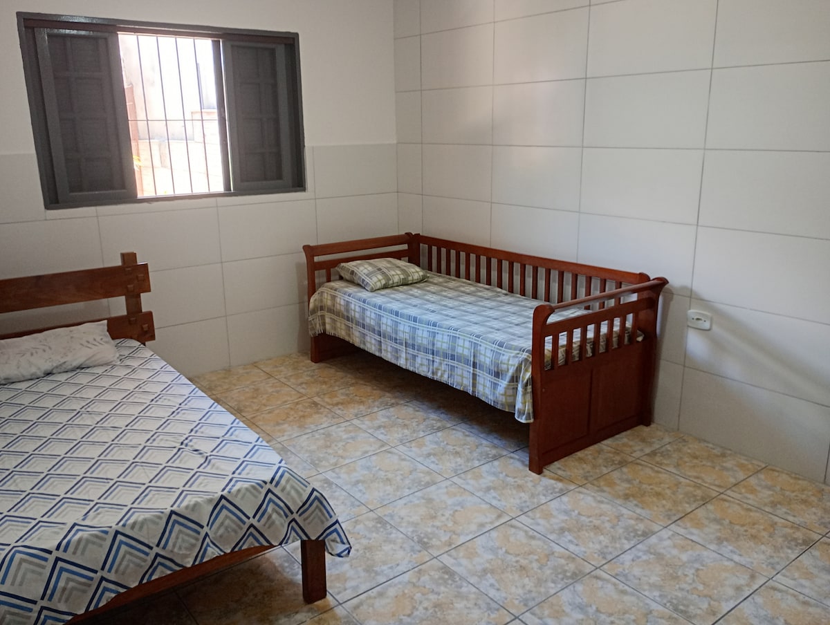 Relájate con toda la familia en este edificio tranquilo y cercano al mar. Estamos a 5 minutos a pie, a 500 metros de la playa de Peruíbe en una casa sencilla pero acogedora. Garagem (espacio para dos autos), cocina equipada, un baño, dos dormitorios, siendo una cama doble, una cama individual y dos literas. Se requiere ropa de cama, toallas y almohadas. Check-in - 12:00 p.m. Salida - 15:00