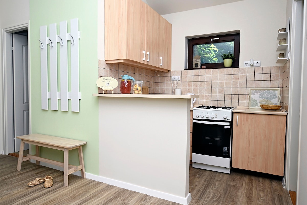 Encantadora casita en el viñedo de Dunabogdány, en el Danubio Bend, a 30 kilómetros de Budapest. Puedes disfrutar de tus días en la zona, puedes hacer senderismo en las montañas Pilis, hacer un viaje a Visegrád y Szentendre mientras te hospedas en la naturaleza en un lugar genial. La casa se encuentra en la parte trasera del enorme jardín de una casa de huéspedes donde puedes tener wifi y acceso gratuito a una piscina exterior durante la temporada de verano.