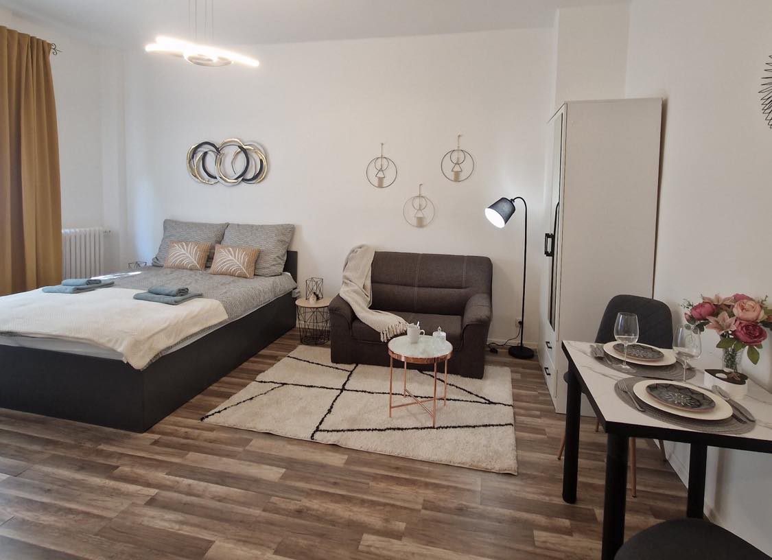 Nuevo estudio en el centro, en el corazón de la ciudad, junto a la calle comercial principal, el cruce principal y el Mercado Central. El Danubio, restaurantes, cafeterías, tiendas, metro y tranvía están a la vuelta de la esquina. Disponemos de 4 estudios individuales contiguos con cama king-size y sofá cama, baño privado y cocina americana, AC, wifi rápido, TV y Netflix. Vestíbulo común con cocina totalmente equipada con horno, placa de cocina de 4 fuegos, lavavajillas, lavadora y secadora.