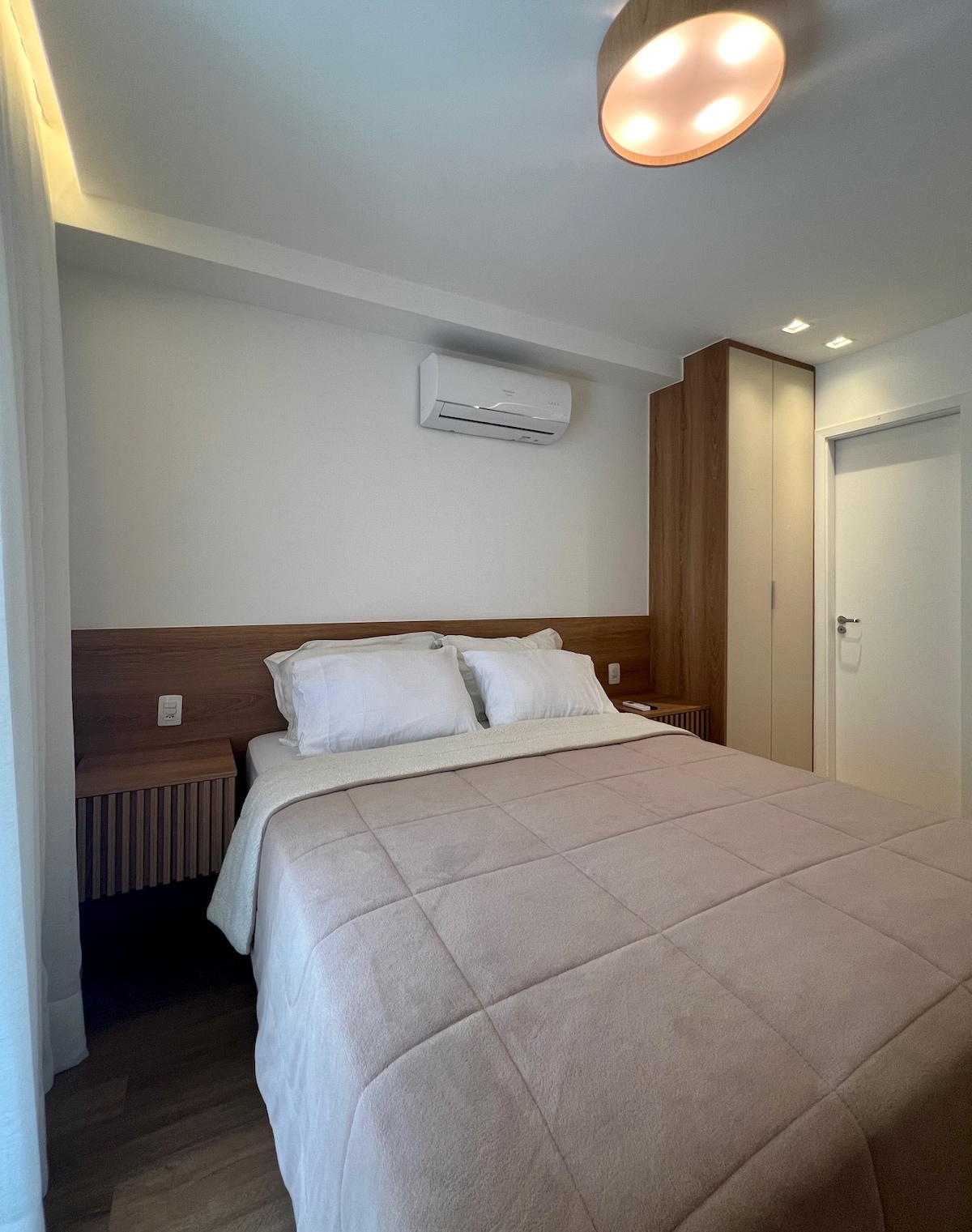 Modern and cozy flat in Itaipava with tasteful décor, comfortable bed, excellent shower, and premium linens. Features fast internet, TV, air conditioning, and practical kitchenware. Condominium offers pool, jacuzzi, sports courts, market, and restaurants, surrounded by greenery and close to Petrópolis. The host provides attentive service and local tips, ensuring comfort, hospitality, and a stay that exceeds expectations.