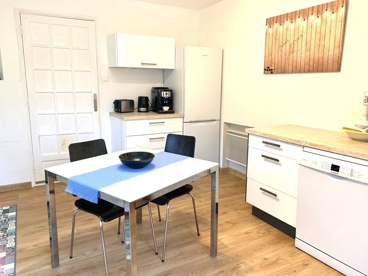 Esta casa consta de: - una cocina equipada con horno, microondas, placa de inducción, nevera pequeña, hervidor de agua, cafetera y tostadora - un baño con ducha, lavabo, inodoro, lavadora - una zona de dormitorio de 2 plazas (160 x 200 cm) abierta - una sala de estar comedor y sala de estar con sofá cama de 2 plazas - Disponibilidad de una cuna si es necesario Se proporcionan sábanas y toallas. Estufa de leña y piscina. Gastos de limpieza a pagar a la llegada: 50 euros