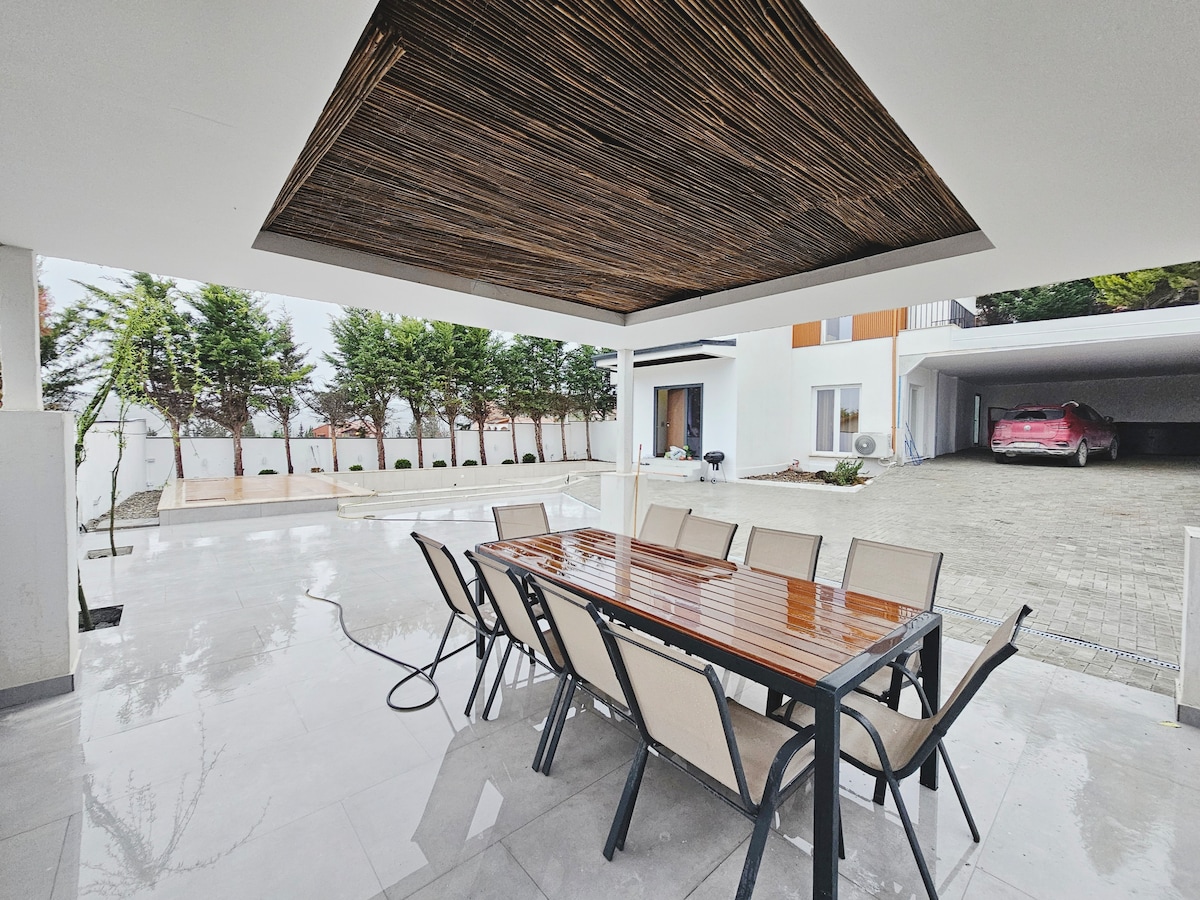 Villa Luxe 2 | Piscina privada, jacuzzi climatizado, mesa de ping pong, hockey de aire, barbacoa, gran jardín. Ideal para grupos grandes de hasta 16 personas. 5 habitaciones, 10 camas Ubicación privada Estacionamiento de hasta 5 autos A 20 minutos de Tirana A 25 minutos de la playa de Durres. A 30 min del aeropuerto mercados y restaurantes cercanos