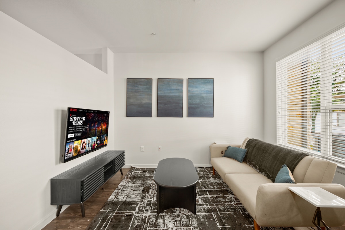 Escápate a una estancia serena en el vibrante norte de Austin, perfecto para negocios o placer. Este moderno refugio combina comodidad, conveniencia y detalles bien pensados. Después de un día de exploración, relájate con interiores acogedores y acceso a servicios premium en el lugar. ✔ Dormitorio + sala de estar (capacidad para 4 personas) Diseño ✔ de concepto abierto. ✔ Cocina totalmente equipada ✔ Lavadora y secadora en la unidad. ✔ Televisores inteligentes con Roku ✔ Wifi rápido ✔ Servicios: gimnasio, salón al aire libre, aparcamiento gratuito