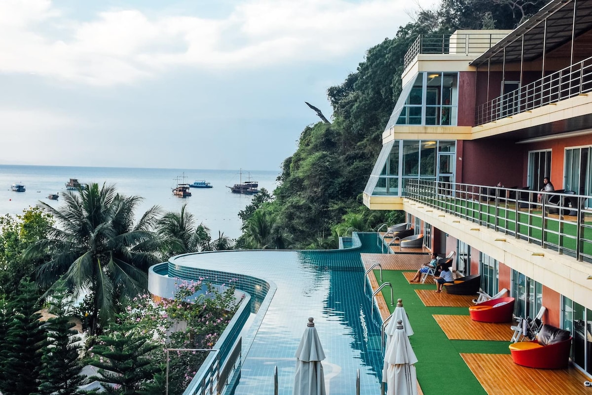 El hotel se encuentra en la isla Phi Phi, cerca del muelle de Ao Tonsai. El desayuno se sirve y una gran piscina rodeada del mar. El hotel es tranquilo, no hay ruido del bar de playa, perfecto para relajarse y en la habitación. Totalmente equipada. La habitación está a unos 200 metros de la playa de arena, que puede sentir la privacidad. La playa de arena blanca, el agua azul claro, buena comida, cerca de la ciudad, cerca de las tiendas. Hay una visita guiada para actividades durante tus vacaciones. Hay muchas otras cosas que puedes seguir y encontrar. Te invitamos a alojarte con nosotros.