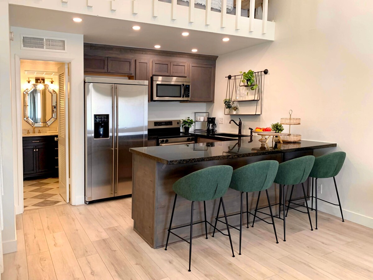 Este loft de dos niveles en el casco antiguo de Scottsdale combina estilo y comodidad. Los altos techos abovedados y la escalera de caracol crean un ambiente espacioso, mientras que los dos dormitorios y los dos baños ofrecen privacidad y comodidad. La suite del loft de arriba cuenta con un vestidor, sala de estar, oficina y TV inteligente. Relájese en el patio privado, disfrute del aparcamiento cubierto gratuito asignado y explore los restaurantes, las tiendas y la vida nocturna del casco antiguo o dé un paseo por el Greenbelt justo al salir de su puerta.