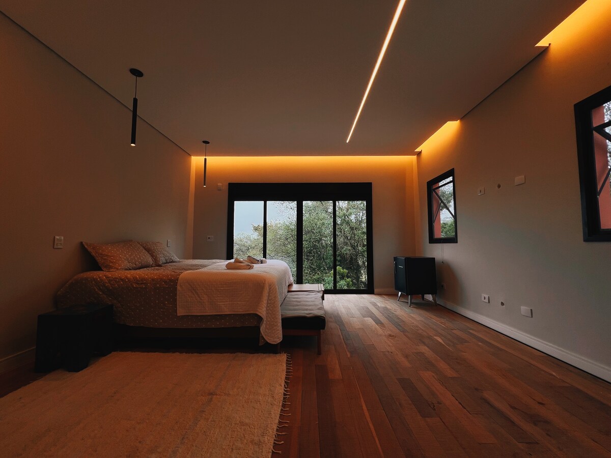 ¿Conoces ese lugar donde puedes dormir con la ventana abierta, la llave del auto en el contacto? Este es el lugar aquí, las mascotas son súper bienvenidas. ANTES DE RESERVAR, LEE ATENTAMENTE LA INFORMACIÓN DE LA UBICACIÓN. Relájate con toda la familia en este hogar tranquilo, seguro y acogedor Silencio absoluto, integración con la naturaleza, sendero ecológico y cascada en la propiedad, la piscina es pequeña pero totalmente privada. A 25 minutos de los centros urbanos En el frío, hay chimeneas para calentarte, y en el calor, una piscina para refrescarte.