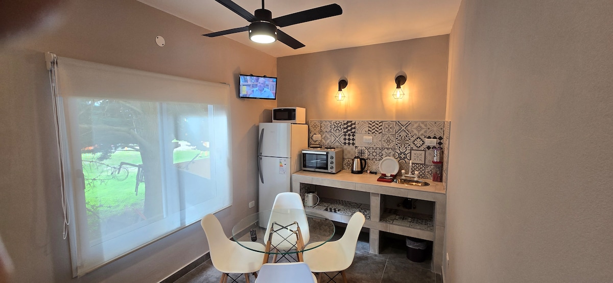 Ubicación inmejorable: a solo 700 mts de la playa y en pleno centro de Pinamar. Desayuno Continental incluido para comenzar tus días con energía. Salón comedor (sin cocina) para tus comidas y momentos de descanso. Heladera disponible para mantener tus bebidas y snacks frescos. Agua caliente y café siempre a tu disposición. Microondas para calentar tus alimentos. Servicio de vajilla y lavado para que no te preocupes por nada. Te esperamos en Black Suites Pinamar, donde la comodidad