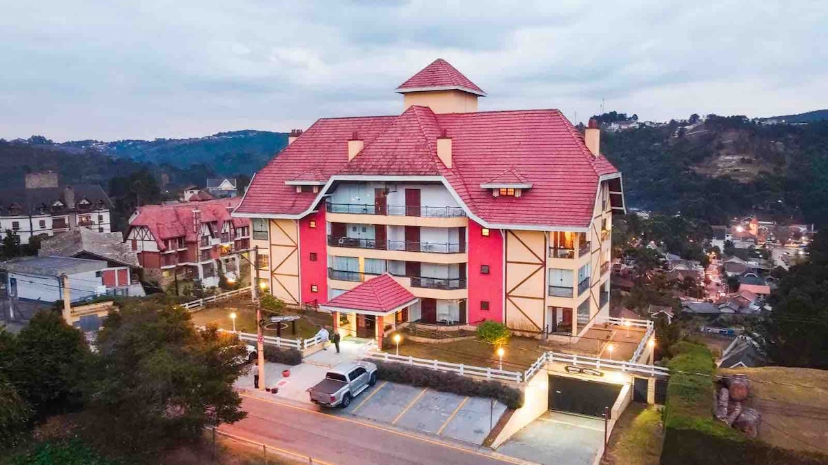 Piso con 1 dormitorio (con 1 cama king + 1 cama queen), sala de estar con chimenea, sillón de lectura, sofá cama y vistas espectaculares. Infraestructura completa con piscinas climatizadas, sauna seca, gimnasio, canchas de tenis y polideportivas y sala de juegos. Edificio de estilo normando que recuerda a un castillo, justo al lado de laderas salpicadas de araucarias, con aire puro, vistas panorámicas, a 1.850 metros sobre el nivel del mar y a pocos minutos de los principales atractivos de la ciudad.
