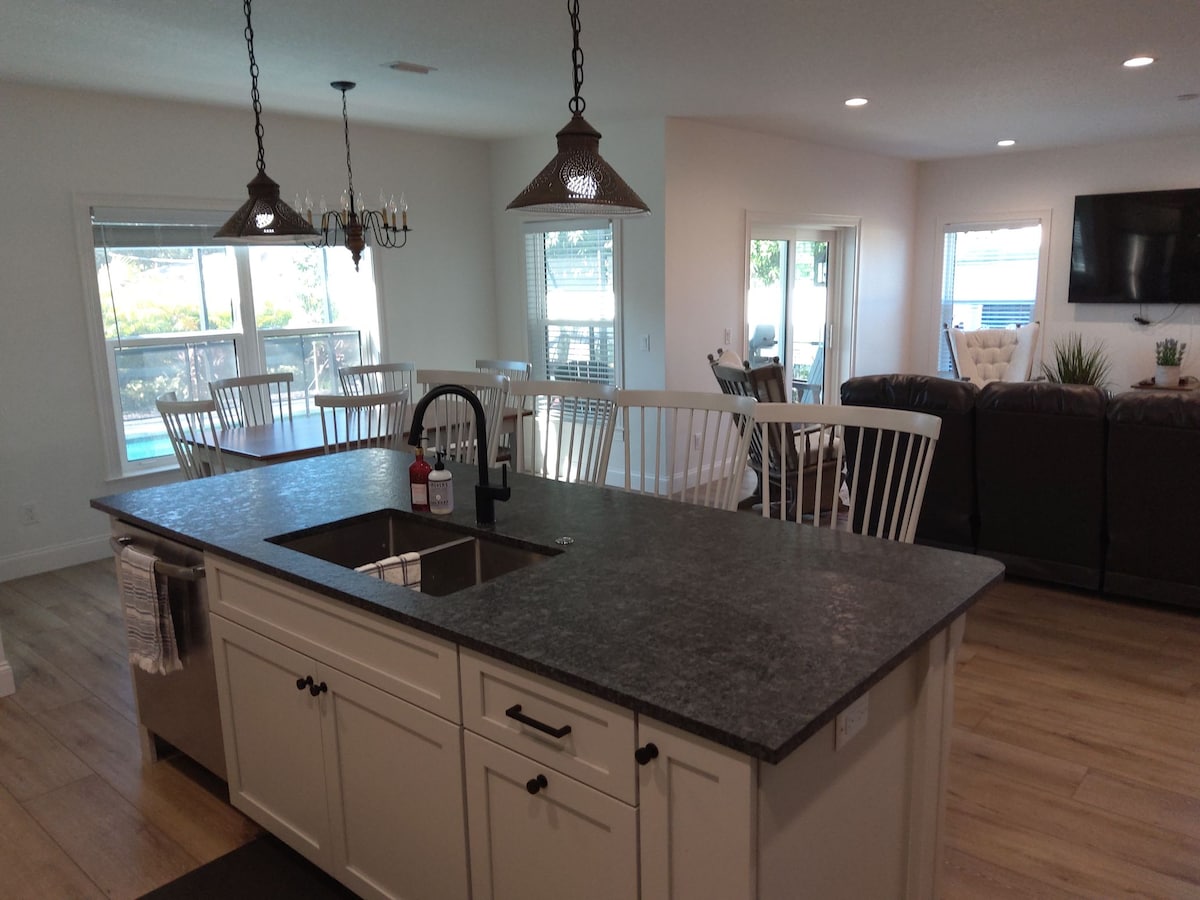 ¡Ven a disfrutar de la nueva casa de nuestra familia, meticulosamente cuidada en Pinecraft! Situada en una calle tranquila y sin salida, pero a pocos minutos de todo lo que ofrece Sarasota. Con 5 dormitorios, cada uno de los cuales es una suite con baño privado, y un amplio plano de planta abierta, nuestra casa es ideal para familias o grupos más grandes. ¡La piscina climatizada con mamparas del patio trasero privado rodeada de exuberantes jardines ofrece un lugar tranquilo para relajarse y crear recuerdos! ¡A pocos minutos de la playa!
