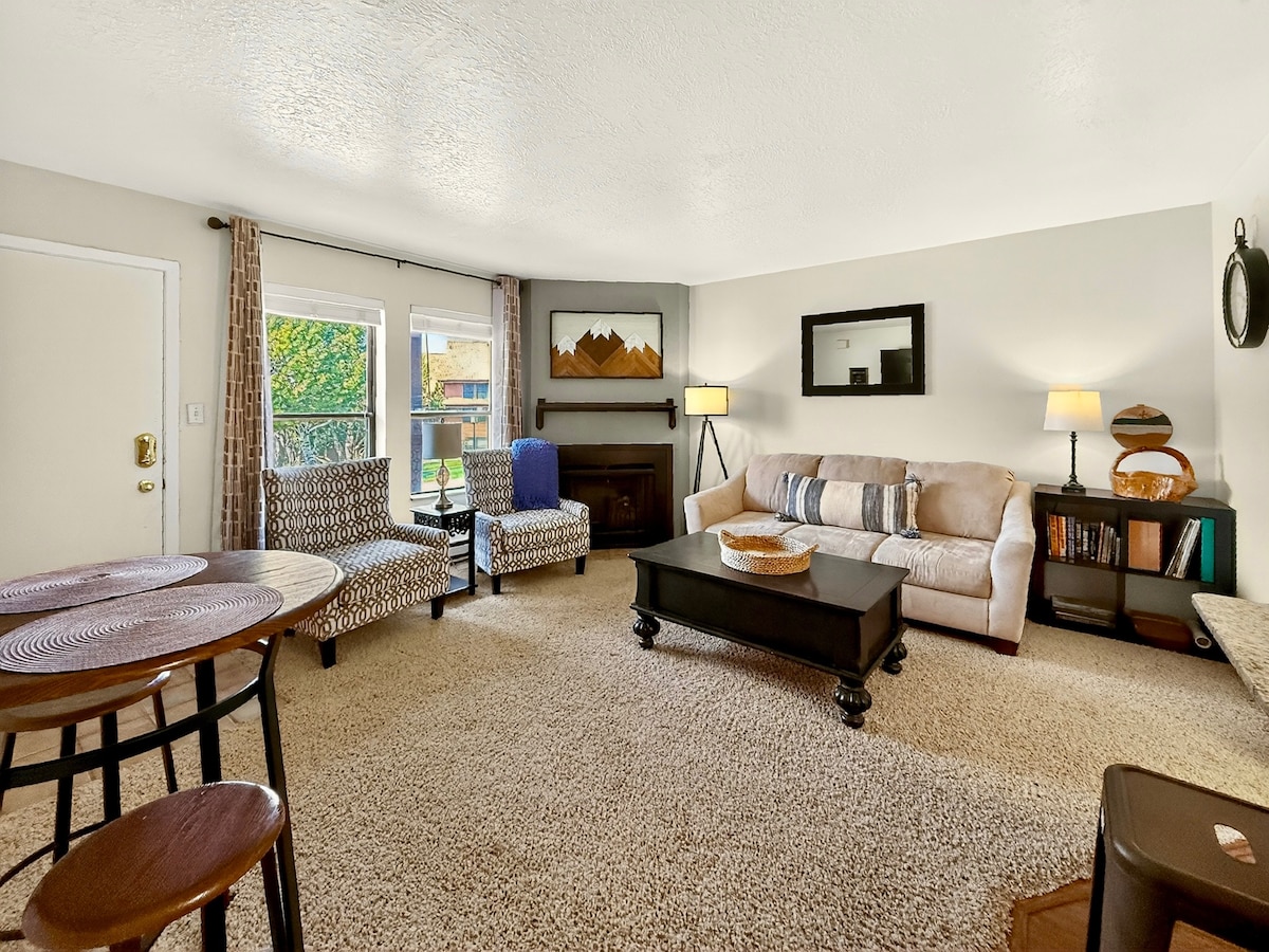 ¡Aire acondicionado frío! A nivel del suelo, sin escaleras. Lavadora y secadora ubicadas dentro del departamento. Ubicado junto a piscina y jacuzzi. La montaña Powder, Snow Basin y el valle nórdico están a pocos minutos. Un servicio de traslado ubicado a 40 yardas del condominio puede llevarte hacia y desde la montaña Powder. Relájate en el jacuzzi después de llegar a las pistas. Cama tamaño king en la principal. La reina saca la cama en la sala de estar. Cocina totalmente equipada, solo trae tu propia comida. Smart TV para que disfrutes. WIFI RÁPIDO GRATUITO.