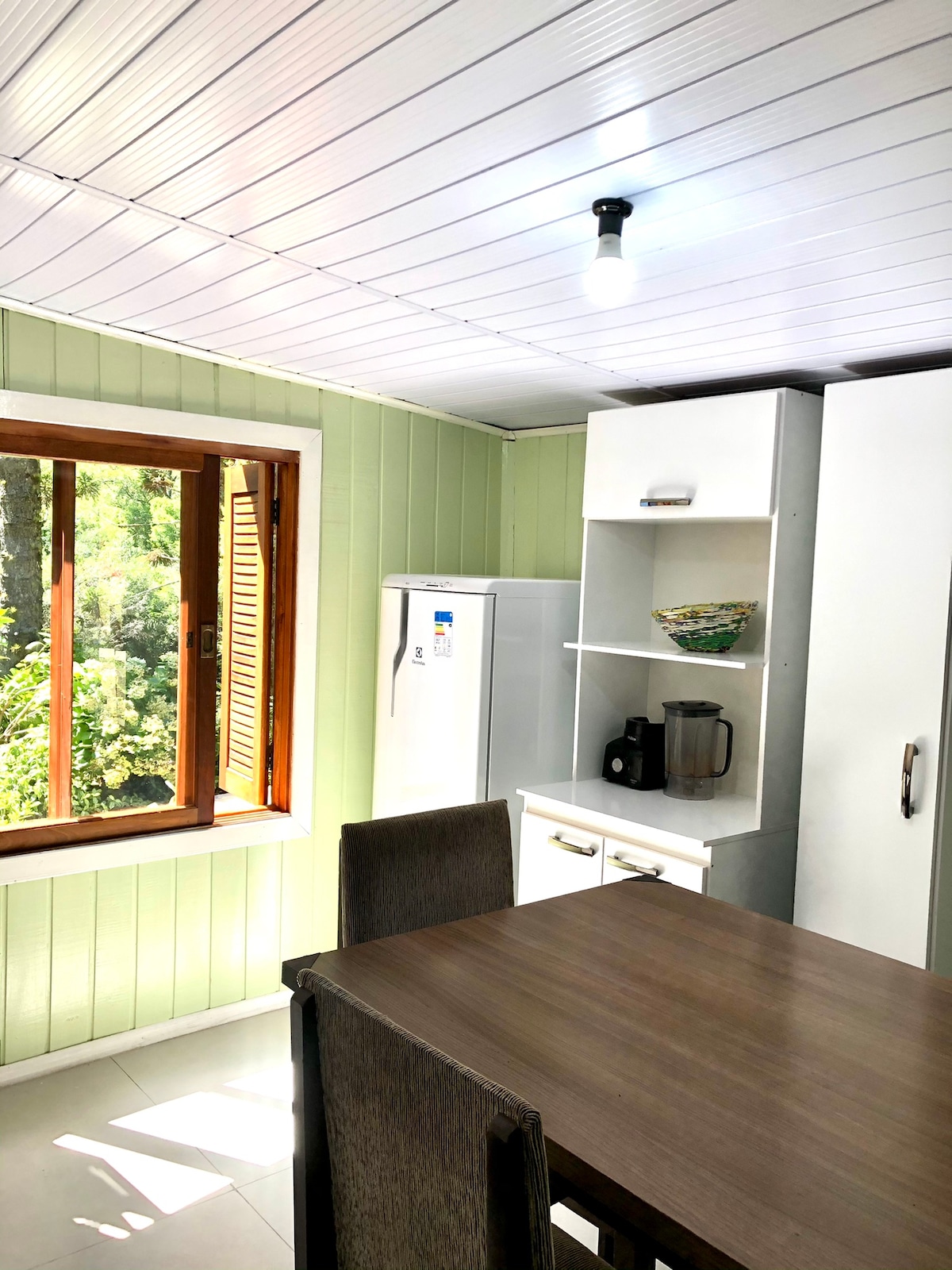 Estamos a 4,3 km (7 minutos) del centro de la ciudad. Situada en el sitio junto a nuestra casa en Linha Ávila Alta 2087, todo el camino está pavimentado. La casa está construida a mano, con techo verde y un gran jardín. Tiene capacidad para 4 personas, 2 dormitorios (cama queen y cama doble), 1 baño, cocina equipada con minibar, cocina, horno eléctrico, cafetera eléctrica, parrilla y utensilios. También se proporcionan sábanas y toallas, así como conexión WI-FI.