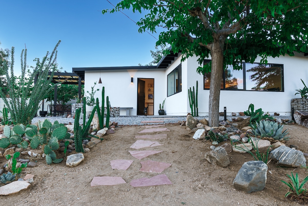 Ubicada en la cima de la Mesa, esta casa de nueva construcción en 10 acres de tierra ofrece vistas al Parque Nacional durante el día y destaca la vasta Vía Láctea por la noche. Sumérgete en la bañera doble con patas de garra y contempla un mar de árboles de Josué o admira el cielo del desierto en el porche trasero mientras las estrellas fugaces se elevan sobre tu cabeza. Si buscas una escapada lejos de las multitudes, pero aún cerca de toda la «diversión» que Joshua Tree y Yucca Valley tienen para ofrecer, no busques más allá de Ladera House.