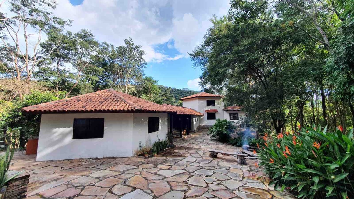 Un gran lugar para aquellos que buscan paz y tranquilidad, ya que estamos ubicados a solo 6 km (a solo 200 metros de la carretera) del centro histórico de Pirenópolis. - Casa con dos suites - Aire acondicionado en las habitaciones -Wi-Fi -Cocina Gourmet completa - Espacio para recreación (fútbol/voleibol) - Piscina con calefacción solar - espacio para fogatas - Televisión (dormitorios/área de ocio) - Hamacas para descansar - Lugar con mucho espacio y privacidad - La ubicación permite paseos por la naturaleza - Aceptamos mascotas - Juegos