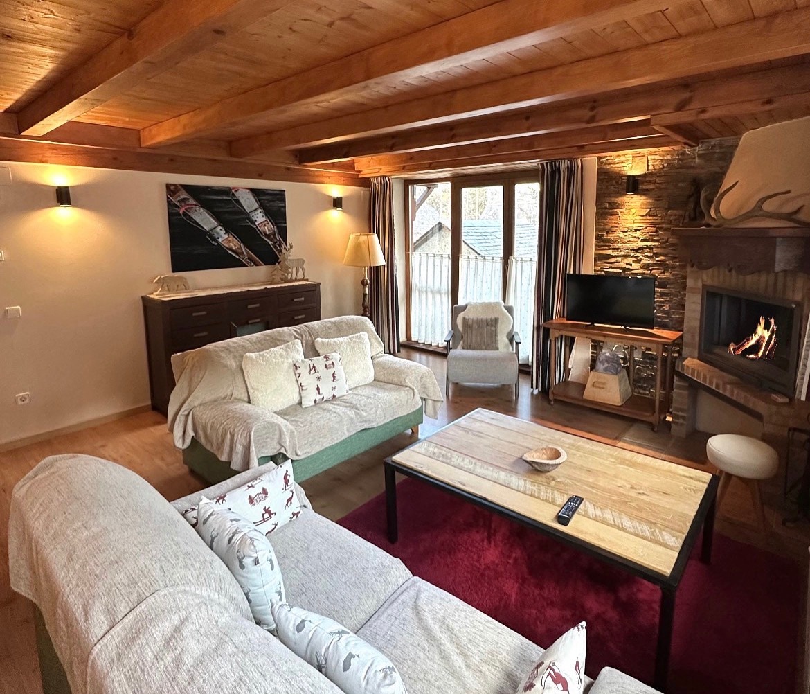 Luminoso dúplex abuhardillado en el centro de Vielha. Con plaza de PARKING y PISCINA en Julio y Agosto. Con orientación sur y unas vistas despejadas. Cálidos acabados de madera. Espacio preparado para un máximo de 4 personas (cama doble + sofá cama doble) ideal para parejas, familias o pequeños grupos que quieran disfrutar de la montaña, el senderismo, las pistas de esquí o la gastronomía del Valle. No olvides que tu mascota es bienvenida como uno más de la familia.