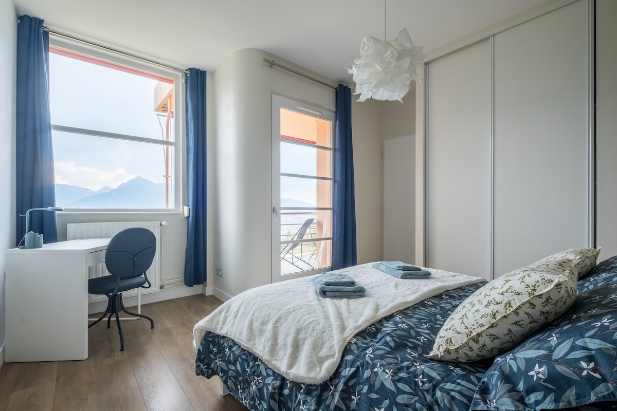 New, cosy appartment with great view. Near to Chamonix / Megève. Appartement de 38 m², idéalement situé, vue Mont Blanc, orienté sud, calme, décoration soignée, entièrement rénové, face à la chaîne du Mont-Blanc, les Aravis, le Mont Joly. Deux centres commerciaux à trois minutes. Sortie 21 de l'autoroute A40 à 1 km. Lac de Passy à 10 mn, Thermes de Saint-Gervais-les-Bains, le Fayet à 5 mn, Chamonix à 15 mn, Megève à 25 mn, Pistes de ski à 15 mn.