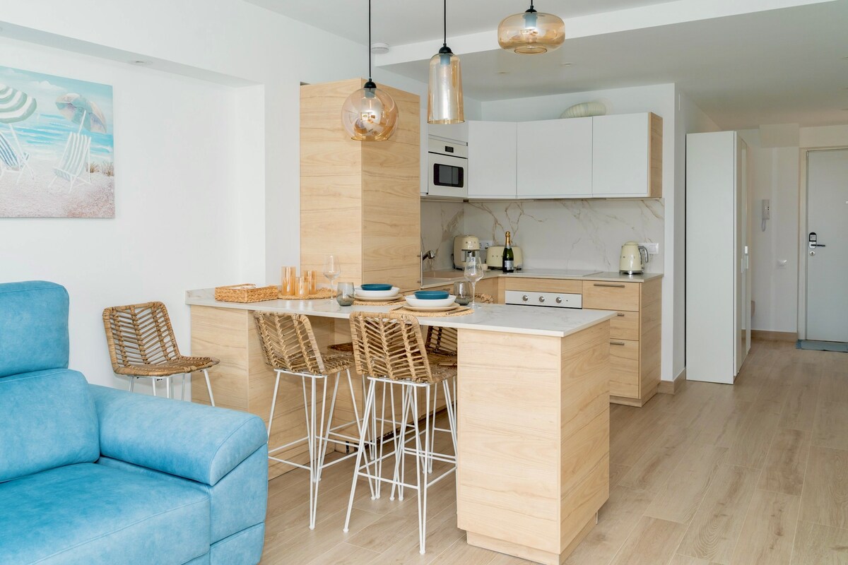 HUTG-056446 Coconut Beach Boutique Studio te hará disfrutar de unas vacaciones con espectaculares vistas al mar, como si estuvieras dentro de un crucero. El espacio ha sido completamente reformado en 2020 por "Boutique Homes", casas de vacaciones con filosofía "smart-chic", espacios pensados para dar una gran funcionalidad y con un diseño sorprendente.
