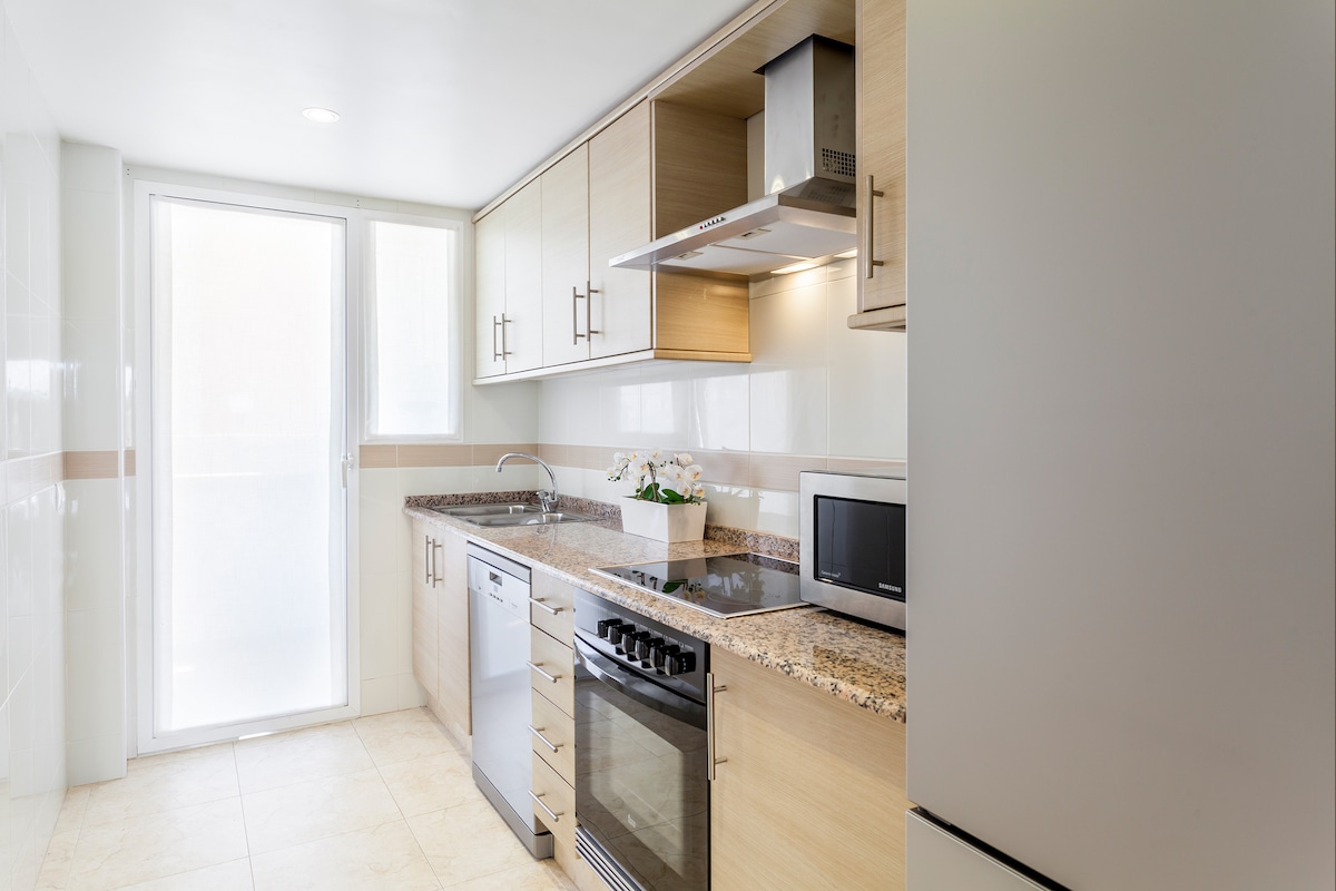 Perfecto para familias y estancias temporales por motivos vacacionales, profesionales, culturales, laborales, estudios o deportivos. Disfruta de la comodidad en todos los sentidos! Wifi Alta velocidad 600 Mb, Smart TV + Netflix, Aire acondicionado / Calefacción central, Lavadora, Lavavajillas, Horno, Cafetera Nespresso, Camas y Almohadas de calidad y Gran Piscina entre otros servicios. A tan solo 10 min andando de "Playa Del Arenal".