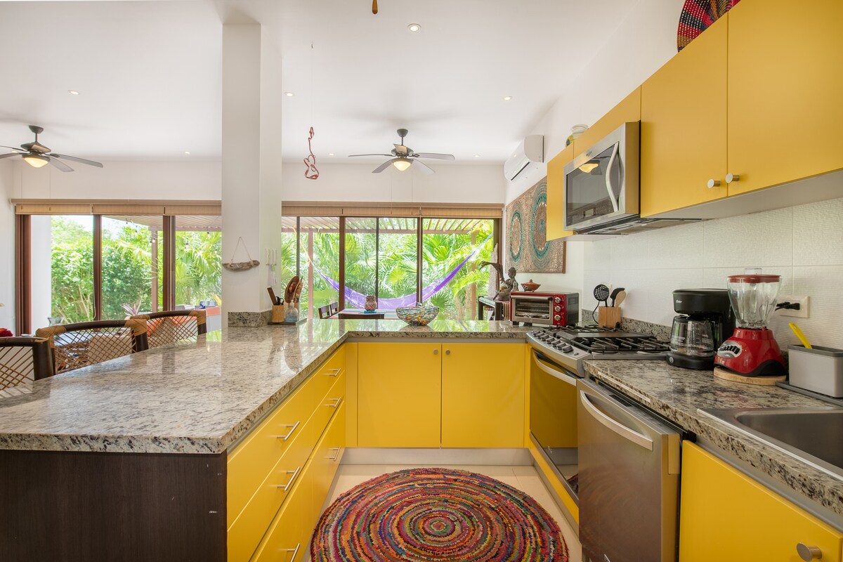 ¡Somos Superanfitriones desde hace 8 años! Nuestra moderna casa de 3 dormitorios y 3 baños se encuentra en Akumal, un pintoresco pueblo de pescadores ubicado a 25 minutos al sur de Playa del Carmen y a 15 minutos al norte de Tulum. La playa y el club de playa están a un minuto a pie de nuestra casa. Relájate en el patio privado con vistas a la exuberante vegetación. Regresa al interior de una casa vibrante y exuberantemente decorada, construida para la diversión y la relajación. Explora los cenotes locales, vive aventuras en la jungla y sumérgete en la cultura local.