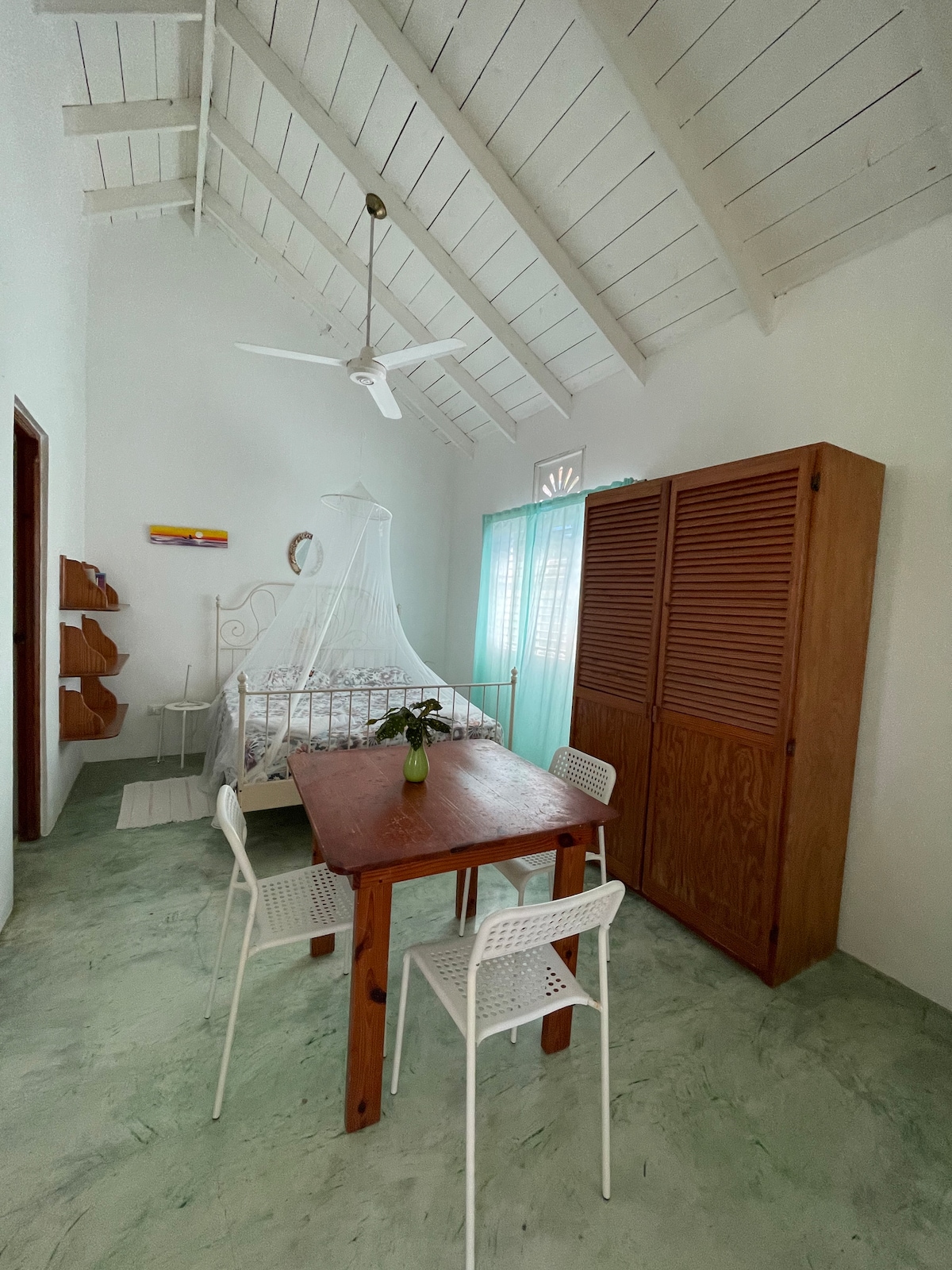 Mi alojamiento está en el centro de la ciudad de Cabarete, República Dominicana. La hermosa playa de arena está a solo 3 minutos a pie, donde puedes disfrutar nadando, surf y kiting. En la playa tienes muchos restaurantes para tener excelentes comidas de bajo costo, o simplemente una bebida para refrescarte. El supermercado está en la esquina del edificio, donde puedes comprar cualquier cosa que necesites. Esta es la mejor ubicación de la ciudad para excelentes fotos de vacaciones completas.