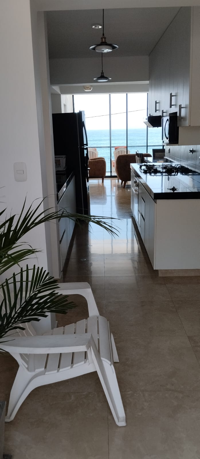 Moderno departamento a 6 cuadras de playa Blanca y Club náutico de P. Hermosa,con lindos acabados de lujo,a 40 minutos de Miraflores, 4to piso, buena vista, totalmente amoblado, cuenta con cochera y ascensor, fácil acceso directo a la playa. 2 habitaciones cómodas,2 baños,agua caliente,2 tv smart,cable, también cuenta con cocina(microonda,air frye,refrigeradora,muebles,barra etc) totalmente equipado balcon y terraza con parrilla. Un lugar para pasarla muy bien entre amigos,parejas o familiares.