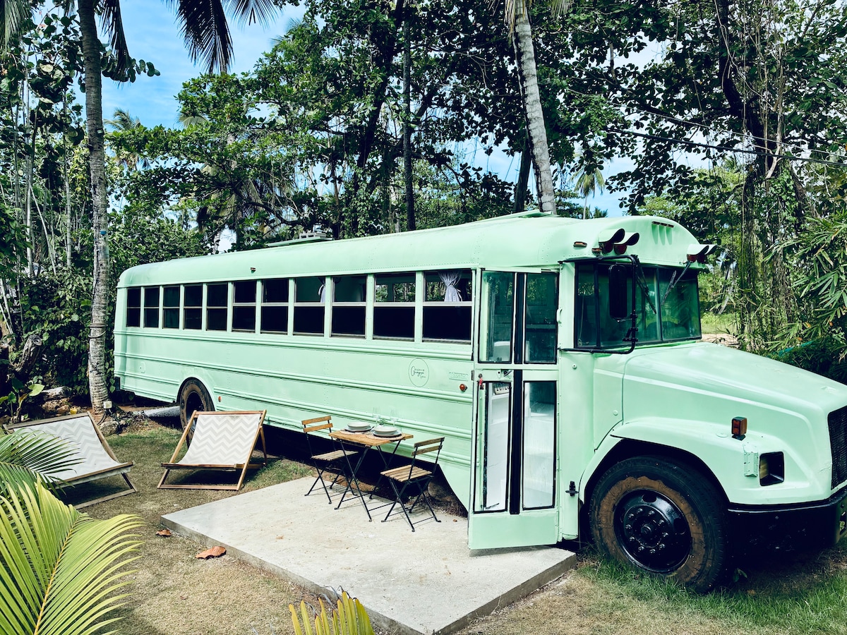 Este espacio dentro de un autobús escolar tan extraordinario les quedará grabada en la memoria. La experiencia de pasar unos días en un entorno mágico a 40 metros de la playa. Un alojamiento atípico con todo el lujo necesario para vivir una estancia agradable e inolvidable. Su ubicación es mágica, ubicada en los jardines de un hotel hermoso en playa Bonita con todos los servicios, restaurantes, bar, chill out, espacio de masajes y de calistenia, vigilancia, y un acceso privilegiado al mar.