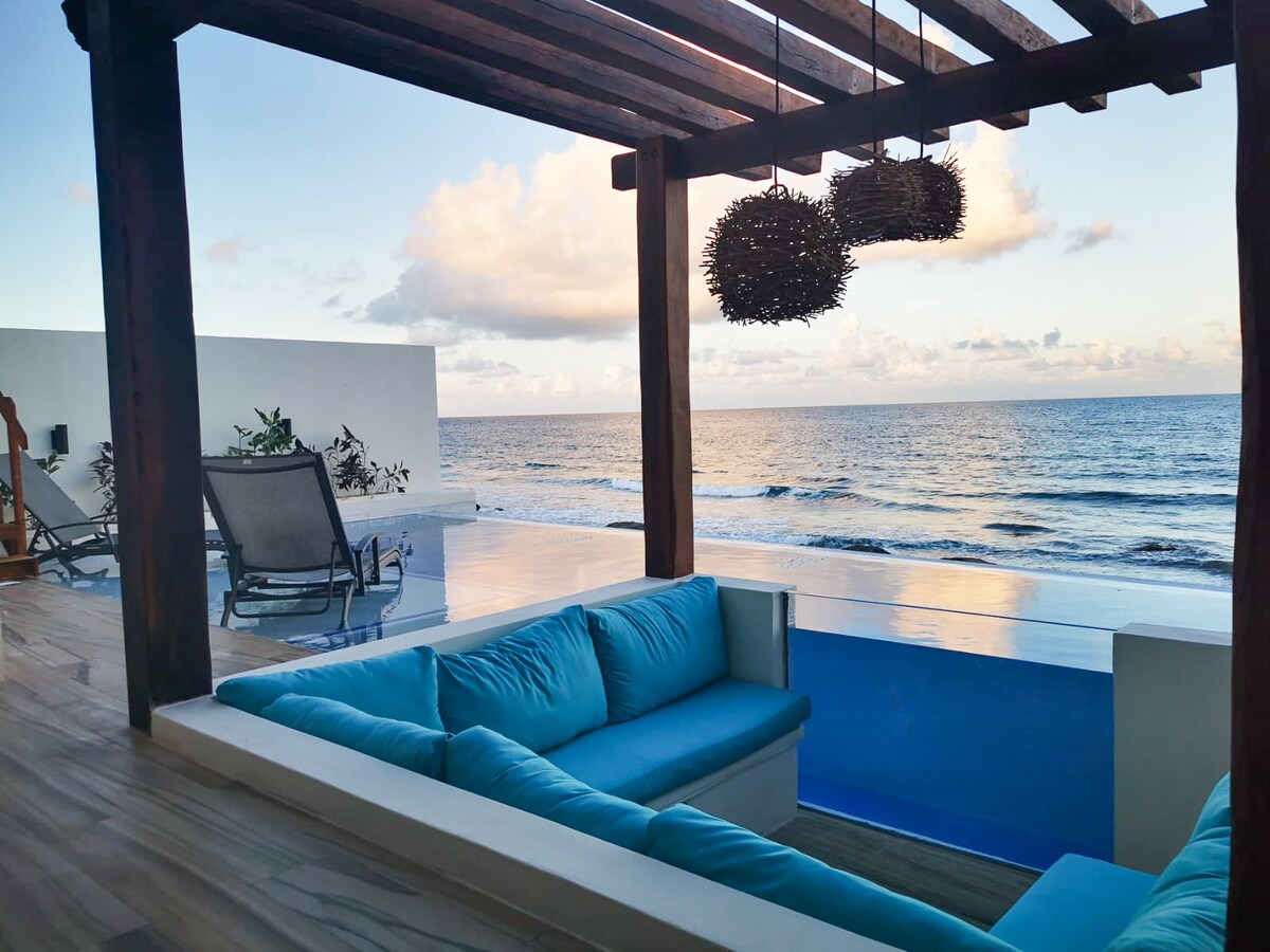 Vive la experiencia de hospedarte en una casa frente al Mar Caribe. Con amplia piscina con calefacción y salida directa a la playa donde en temporadas de tortugas (mayo a octubre) las observaras hacer sus nidos, justo ahí en el patio. Desde la cocina, su balcón como sus tres recámaras te deleitarán con la salida del sol y de la Luna. La gran azotea brinda vistas ilimitadas del mar al oriente y occidente y una espectacular puesta del sol. En esta casa tendrás recuerdos que durarán toda la vida.