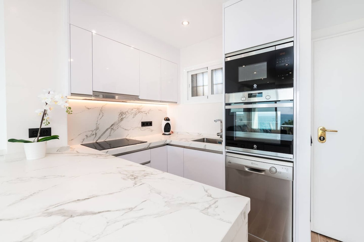 'HOME' AWAY FROM HOME How home should feel: A brand new fully renovated apartment with all amenities needed. At a 4 min walk away from the beach and 10 min walk away from the train station (Montemar Alto). Flat located on the 2nd floor with elevator facing the interior garden and the pool and peaceful surroundings. Fully equipped new kitchen, 1 terraces, AC units in all rooms and a new designer bathrooms, FREE WiFi and TV 4K with SmartTv
