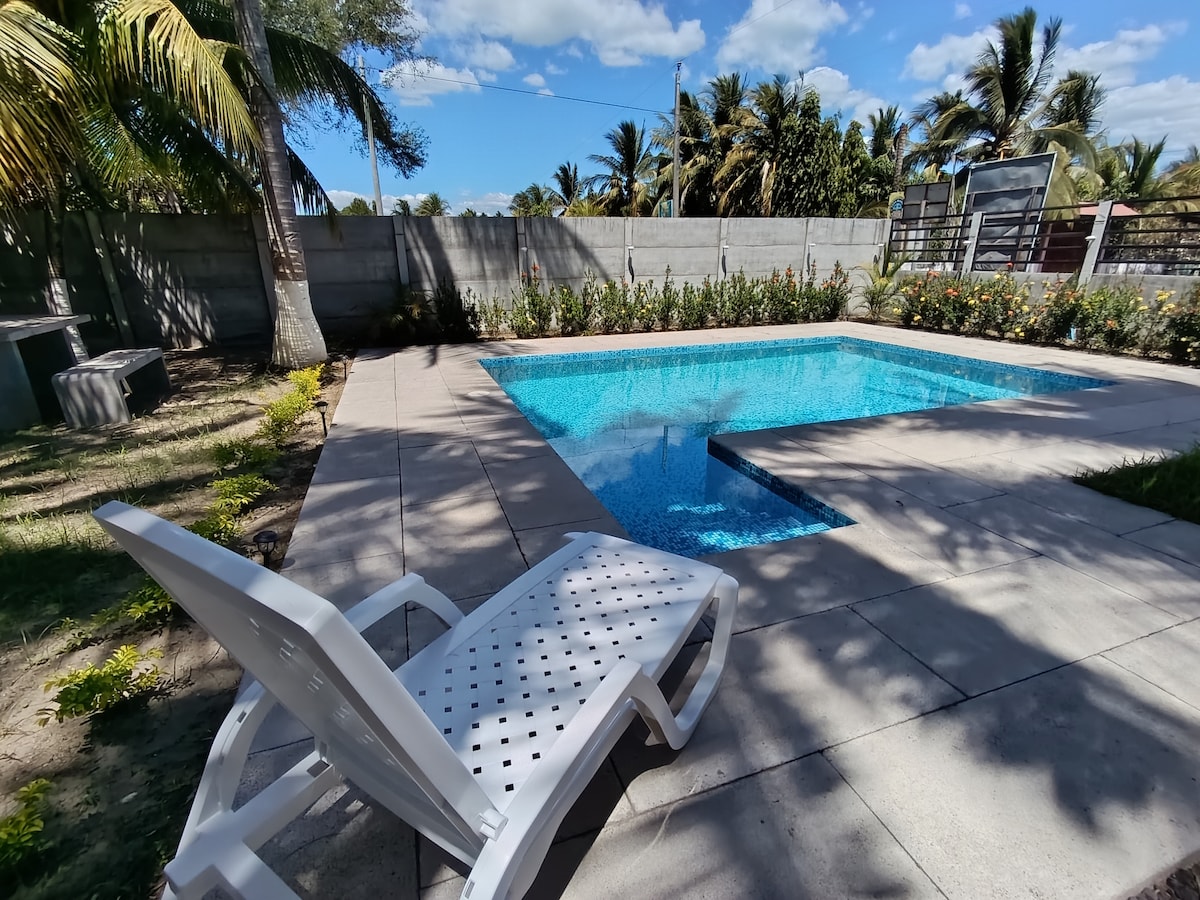 ¡Bienvenidos a Garden Beach! Sumérgete en la serenidad costera en esta encantadora casa a la orilla de la playa. Con 4 habitaciones, cada una equipado con aire acondicionado para tu comodidad, y seis cómodas camas para un descanso reparador. Con 2 baños exteriores y 2 baños interiores. Disfruta de la piscina cristalina, diseñada tanto para adultos como para niños. Además, el acceso privado a la playa. NO PERMITIMOS EVENTOS. RESPETAR LAS NORMAS ESTABLECIDAS. RESPETAR EL NÚMERO DE HUÉSPEDES.