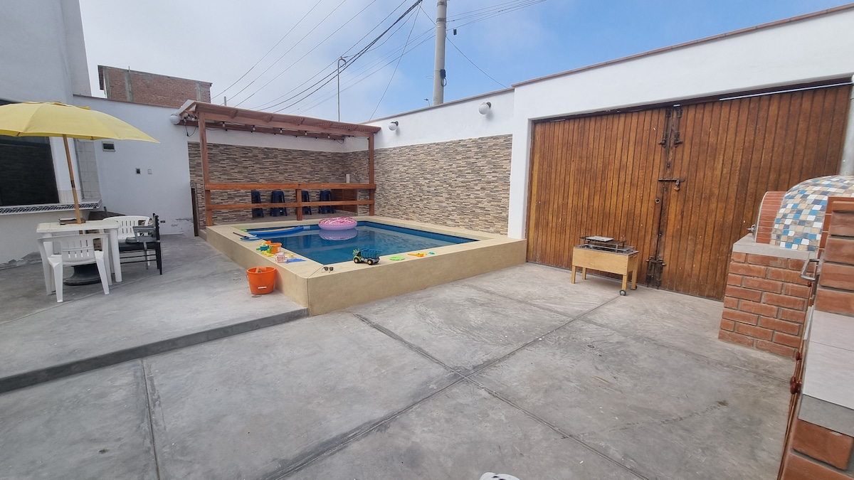 Escápate del ruido y disfruta del descanso junto al mar en esta acogedora casa de playa en Cerro Azul, con piscina privada y ubicada en la cuarta fila dentro de un condominio exclusivo y seguro. La playa está a solo 5 minutos caminando, ideal para disfrutar del mar y regresar a seguir relajándote. Perfecta para familias y amigos que buscan tranquilidad, a 1 hora y media de Lima, a 4 minutos del pueblo de Cerro Azul y a 25 minutos del Boulevard de Asia.