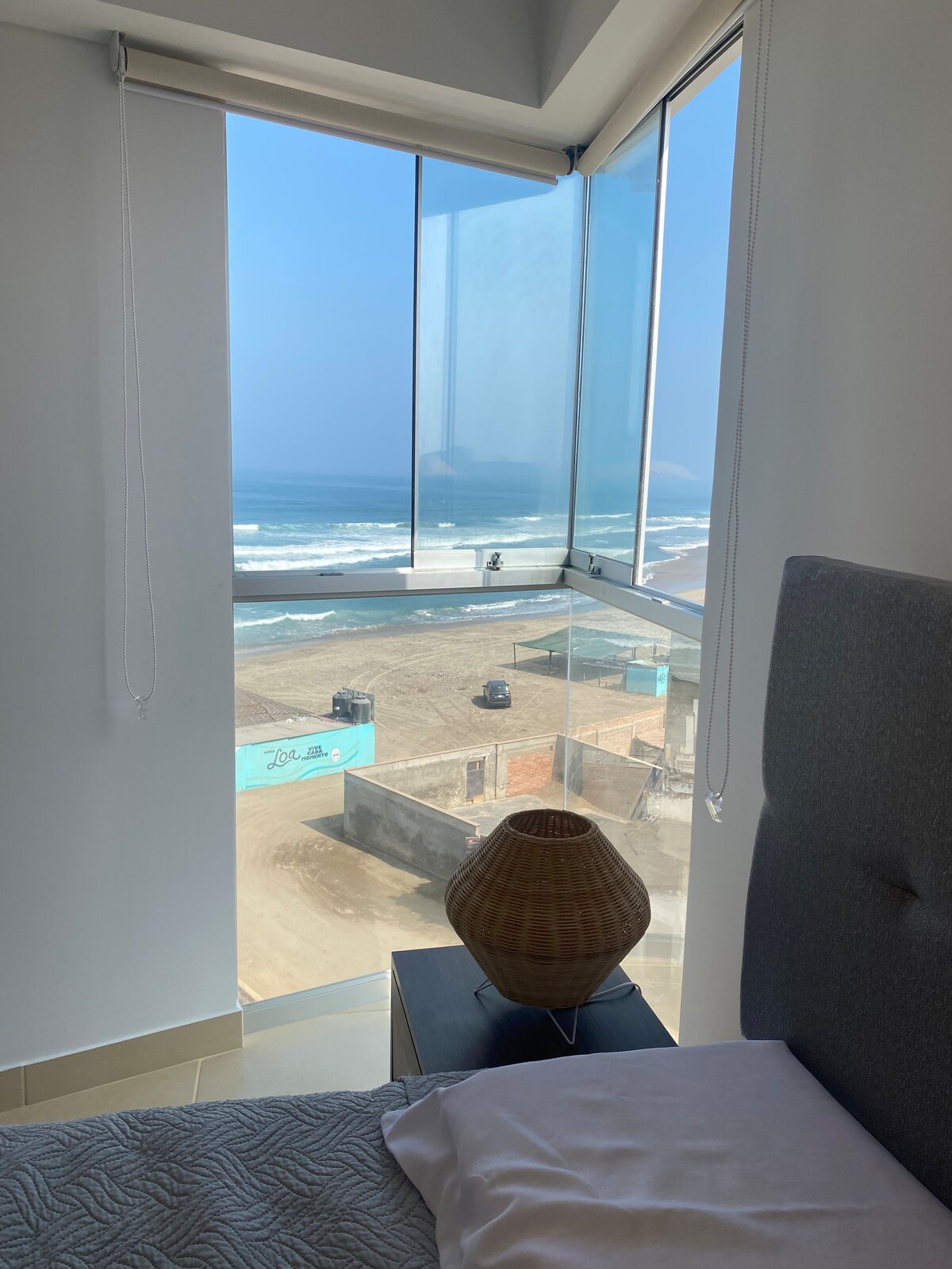 Miniapartamento tipo loft , con vista al mar. Perfecto para pasar unos dias inolvidables en pareja. Cuenta con cama king, mueble cama, tv smart, wifi, cocina a gas, menaje, sala, mini comedor, baño con terma agua caliente, lavadora. Además, podrás aprovechar unas noches fabulosas escuchando el sonido del mar y disfrutando de una hermosa vista. La playa es pequeña, casi privada. La piscina es un area común de la casa, habilitada de 10 am a 6pm. NO BRINDO TOALLAS NI ARTICULOS DE ASEO PERSONAL.