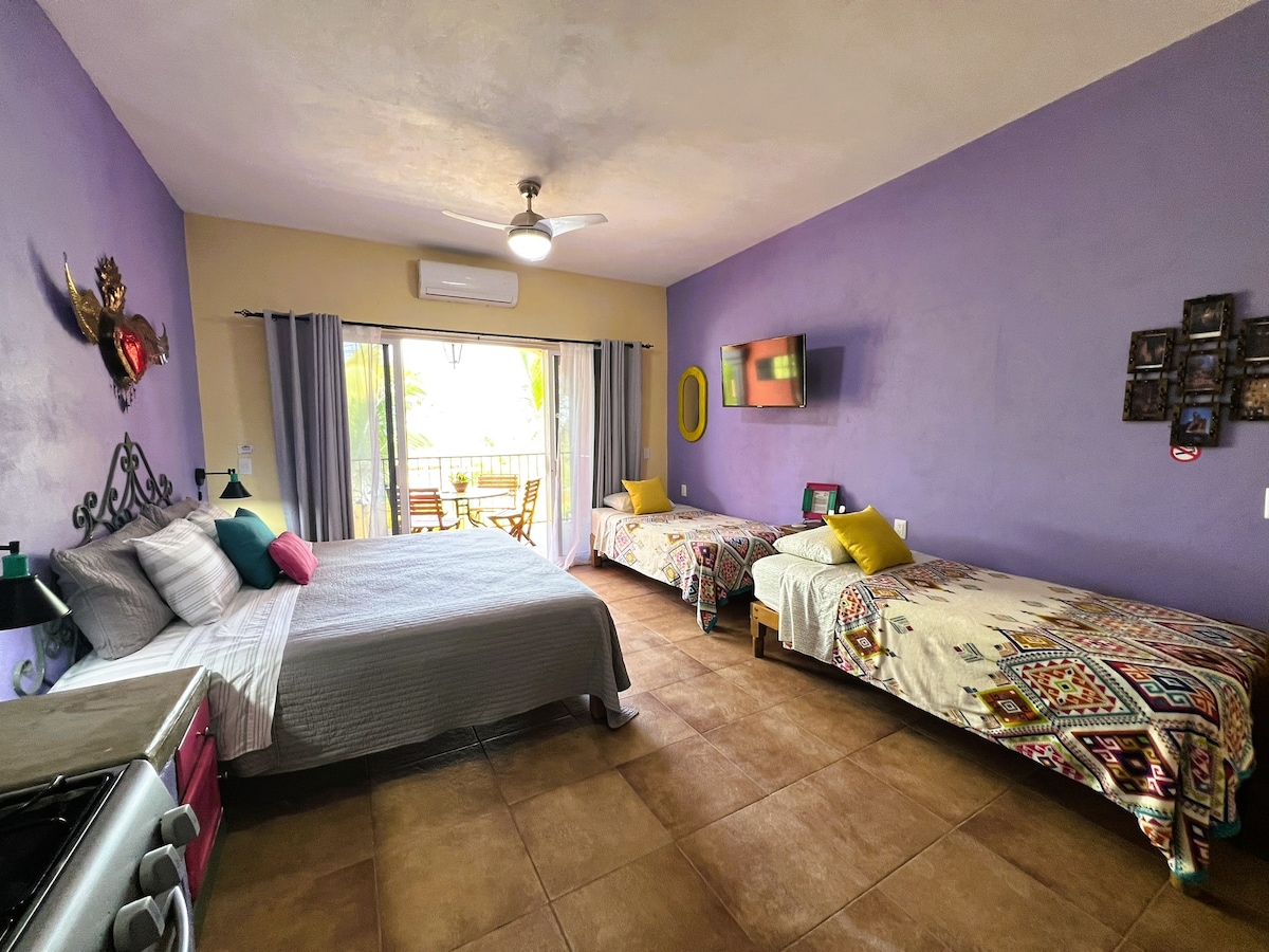 Apartamento estudio pequeño pero totalmente equipado. A sólo media cuadra de la playa. Segundo piso con balcón privado y vista parcial al mar. Estación de trabajo e Internet de alta velocidad. La unidad es parte de nuestro hotel boutique, pero es independiente de él. Nuestra propiedad ofrece un estilo de vida donde el refinamiento se combina con la comodidad, donde cada detalle refleja un espacio habitable sofisticado. Muy unico para la zona. Disponible para estancias cortas o largas.
