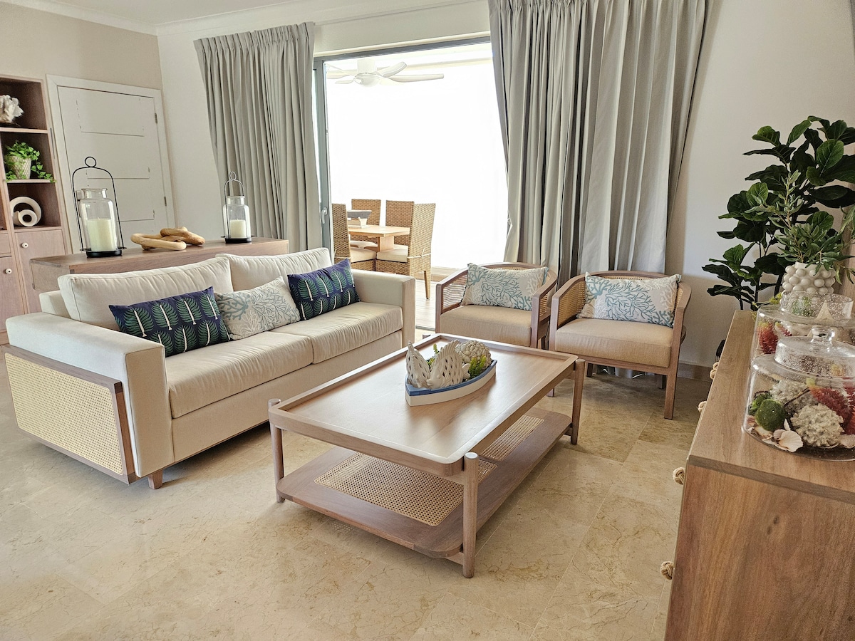 Este penthouse privado cuenta con una suite principal con baño privado y vestidor, una gran terraza ideal para comer al aire libre o relajarse, cocina completa, comedor, una acogedora sala de TV y lavandería dentro de la unidad. El espacio es completamente privado y está diseñado para tu comodidad. Además, tendrás acceso a las piscinas, el spa, el gimnasio, el restaurante y seguridad 24/7, todo dentro de una comunidad segura frente a la playa.
