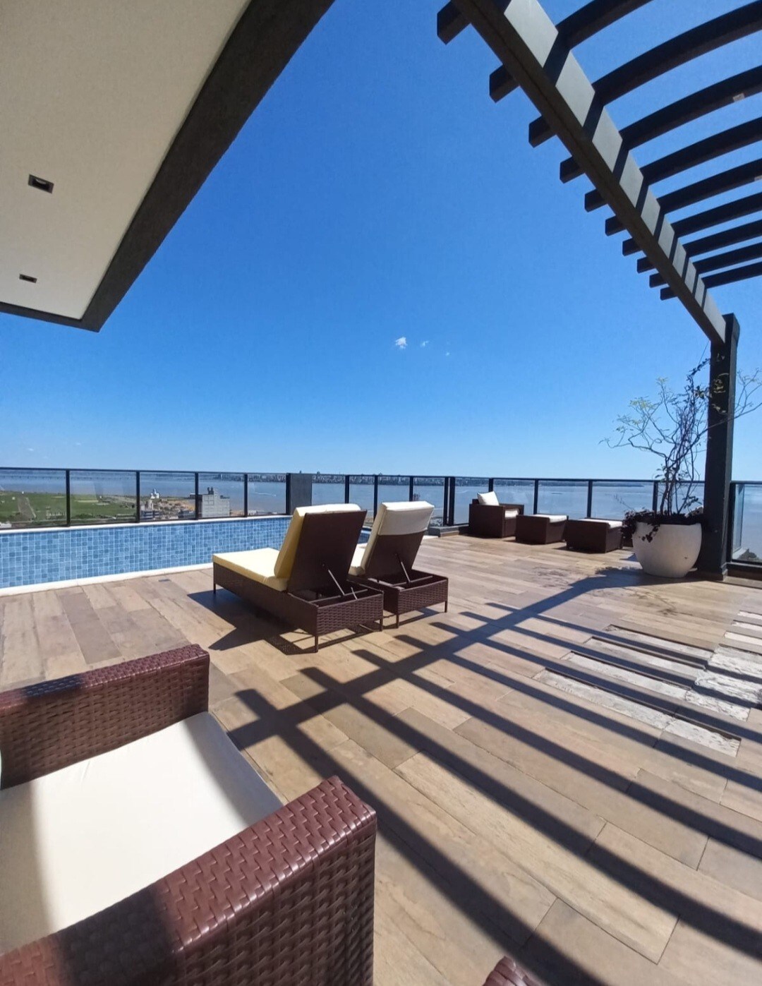 Las Mejores Vistas en Encarnación. Ubicado en el último piso del exclusivo edificio Paseo de los Teros con vista panorámica al río y la costanera. Considerado uno de los apartamentos más grandes y lujosos de la ciudad de Encarnación con 4 dormitorios (3 con vistas al río ) cuenta con todos los equipamientos necesarios para tener una experiencia inolvidable.