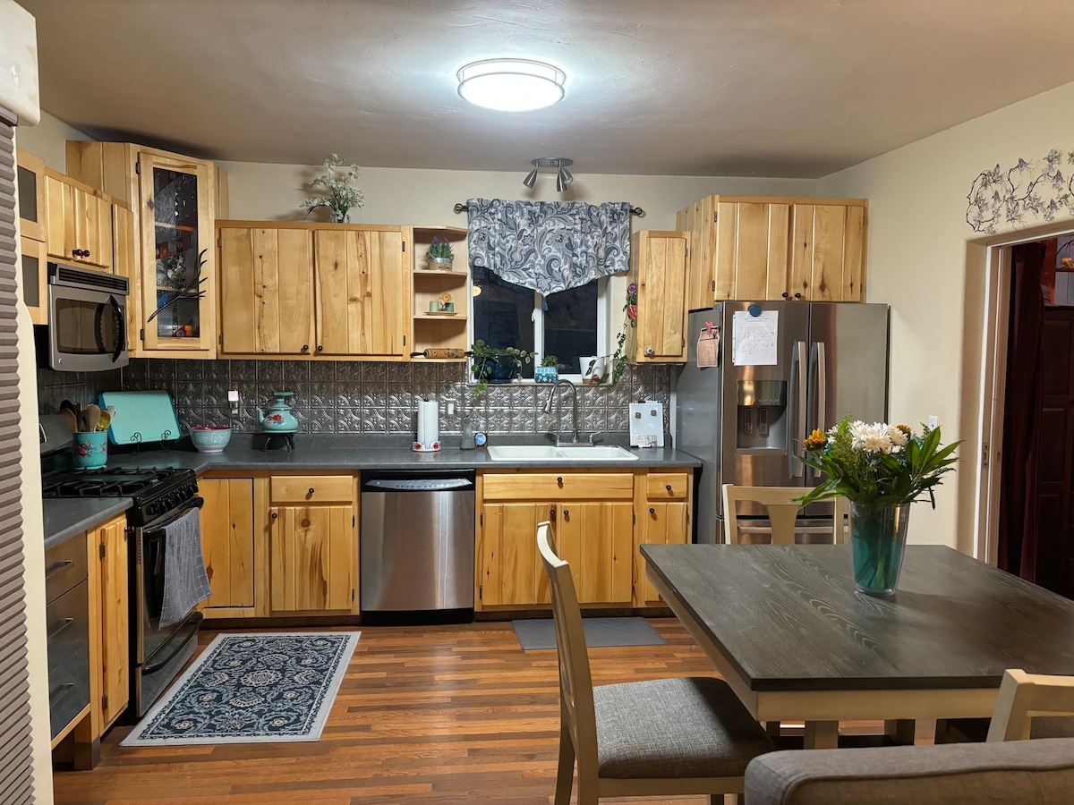 Contempla las maravillas del Parque Nacional Mesa Verde cada mañana desde tu terraza en Nighteagle's Nest. La entrada al parque está a 5 minutos. Estamos en 11 acres boscosos en una subdivisión rural de 2000 acres. Te encantará la gran bañera de 1904 con patas, así como una ducha a ras de suelo para eliminar todas las tensiones musculares de tus aventuras en el Salvaje Oeste. Luego disfruta de tu cama tamaño king de estilo occidental o relájate en el loft en una cama tamaño queen con la parte superior acolchada. Siéntete libre de caminar por nuestros once acres.