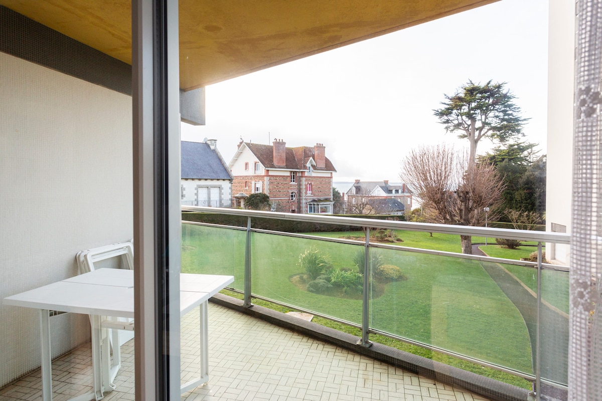 Apartamento completo con balcón y vistas al mar. El apartamento está en la planta baja en el lado de la entrada y con un balcón con vistas al parque en el lado de la sala de estar. Estarás a 50 m de la playa y a 300 m del casino, del «spa» y de todos los comercios. 1 habitación con cama doble, una habitación con 2 camas individuales + sofá cama de 2 plazas. Aparcamiento reservado + guardabicicletas. Alojamiento tranquilo ideal para unas vacaciones en el mar.