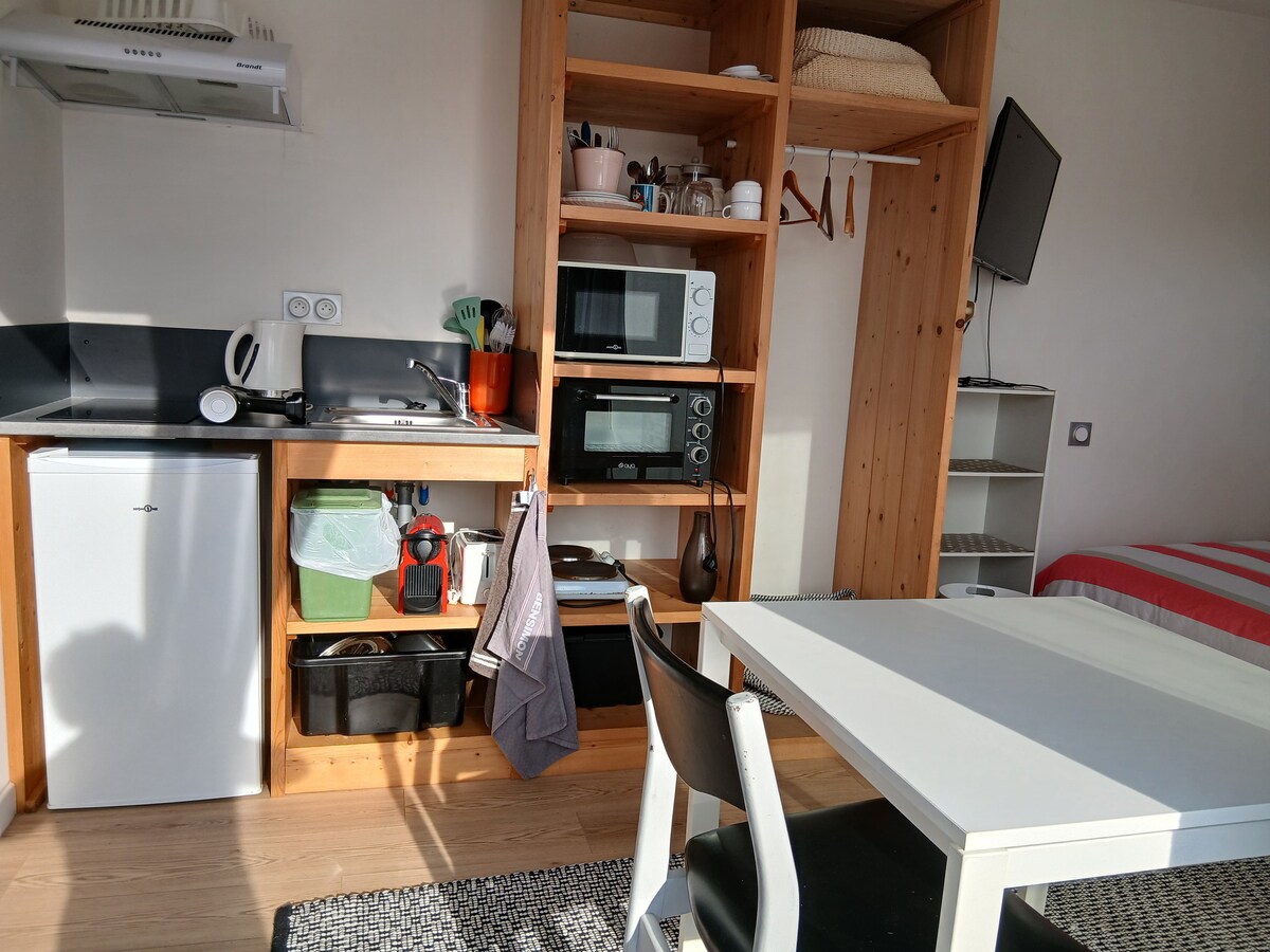 Pequeño estudio de 20 m2 con un baño con ducha a ras de suelo y una pequeña terraza. Lugar muy tranquilo a 5 minutos del centro de la ciudad y sus tiendas, pequeña ciudad con carácter con sus artesanos y sus lavaderos renovados, hermosas visitas en barco por el río. Estudio renovado y amueblado. Sofá cama para 2 personas de buena calidad y 1 cama en altillo con capacidad para 2 adultos. No se admiten animales. Pontrieux se encuentra a 20 minutos de las playas.