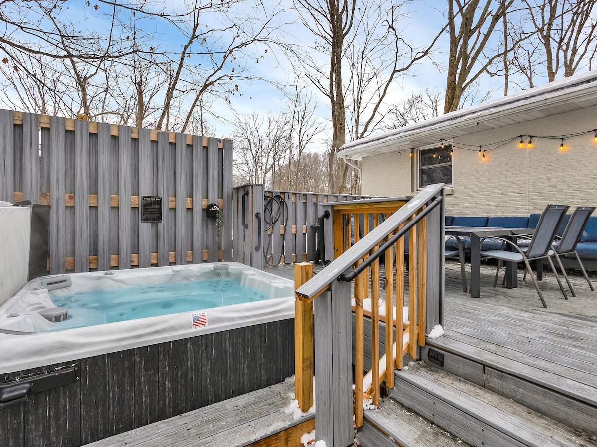 Latitude Adjustment es un refugio único en Pocono Lake, diseñado para quienes buscan la combinación perfecta de relajación y exploración local. Equipado con una increíble sauna de vapor al aire libre para 4 personas, una bañera de hidromasaje privada para 7 personas con cascada, altavoces Bluetooth y luces LED, una enorme sala de juegos con TV de 65pulgadas, estufa de leña, gran área de entretenimiento al aire libre con parrilla, chimenea, cobertizo para huéspedes y comedor. Ubicado en una hermosa comunidad de Arrowhead Lake, rica en servicios, a 1 minuto caminando del lago.