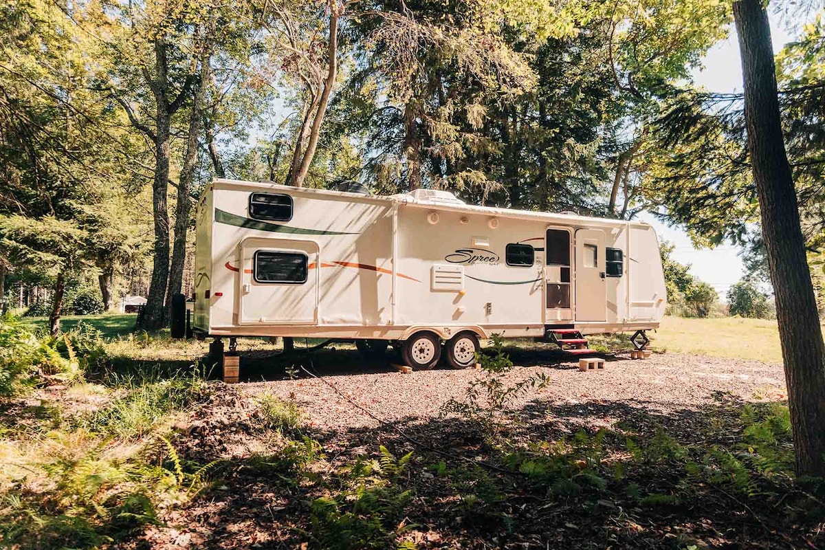 Vuelve a conectar con la naturaleza en esta escapada inolvidable. ¡Atención, amantes de las hojas y buscadores de paz! ¿Estás planeando un viaje a las Catskills o tal vez un concierto en el Bethel Woods Center for the Arts? La caravana está situada en un entorno boscoso sereno, capacidad para 4 personas con cocina completa, baño, terraza al aire libre, barbacoa y chimenea, calefacción y aire acondicionado.