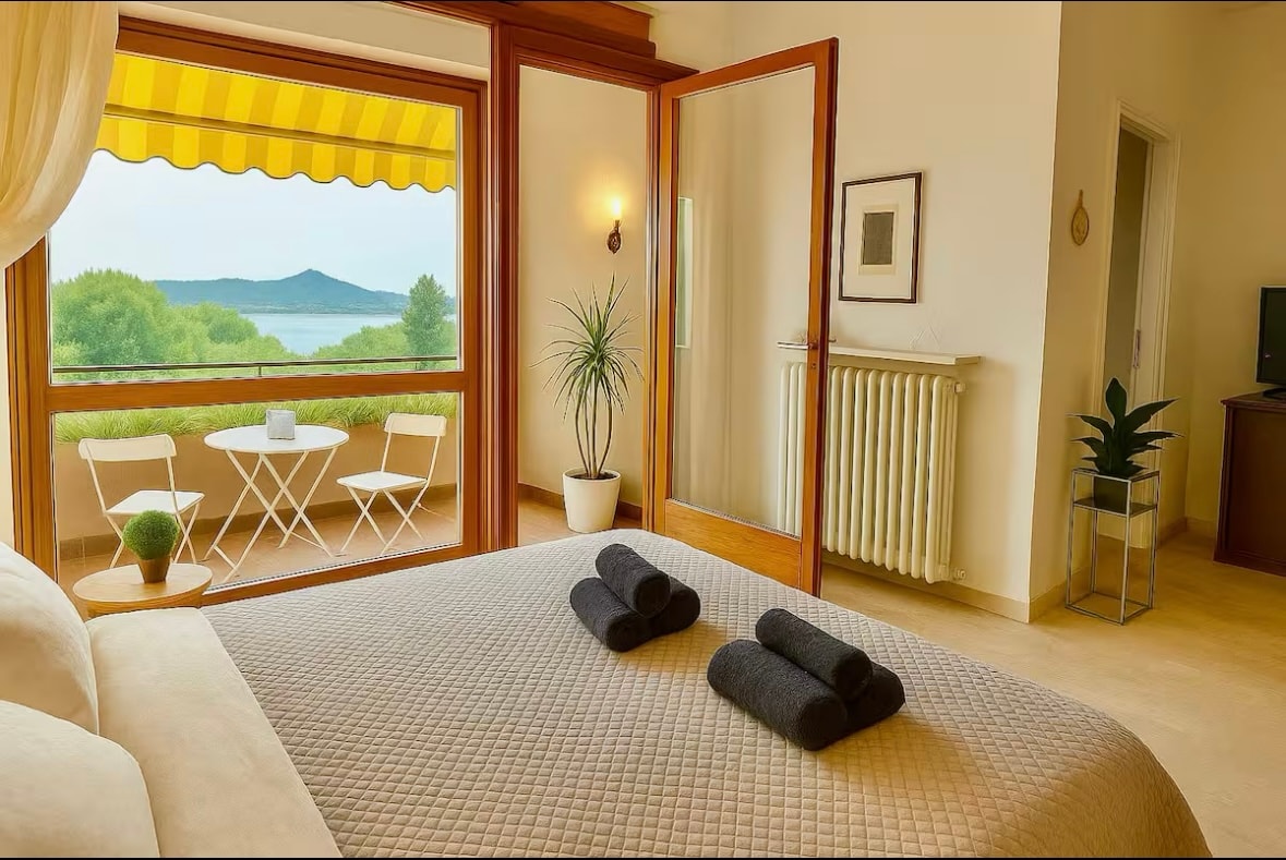 Apartamento con impresionantes vistas al lago Mayor, acceso independiente, terraza/solárium y jardín a disposición de nuestros huéspedes, donde podrán disfrutar de los preciosos días de sol con total relax. Es un apartamento de 1 piso, con: 2 dormitorios (un dormitorio principal con cama de matrimonio y un segundo dormitorio con cama de matrimonio divisible en camas individuales), una sala de estar, 1 baño y una cocina con todos los utensilios de cocina que puedas necesitar durante tu estancia.