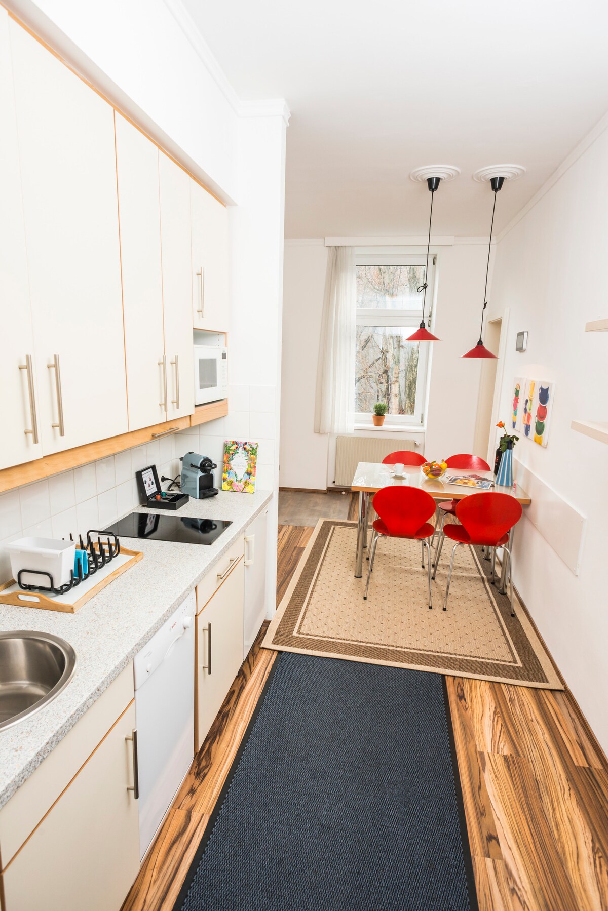 Bienvenido a nuestro lujoso apartamento en el corazón de Viena. Aprovecha la céntrica ubicación, a solo 50 metros del tranvía 43 o de la estación de metro U6 «Alser Straße», con solo 4 paradas (7 minutos) hasta el centro de la ciudad. Si no quieres viajar lejos, puedes disfrutar de los restaurantes y bares cercanos (<100 m). También encontrarás un gran supermercado a la vuelta de la esquina junto con todo lo que podrías necesitar. Hay una estación de alquiler de bicicletas de la ciudad muy cerca. El Hospital AKH está a 350 metros.